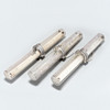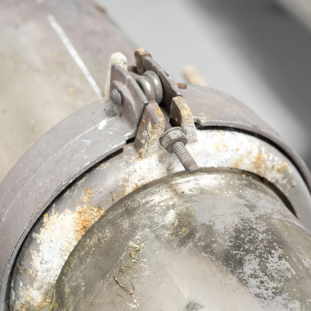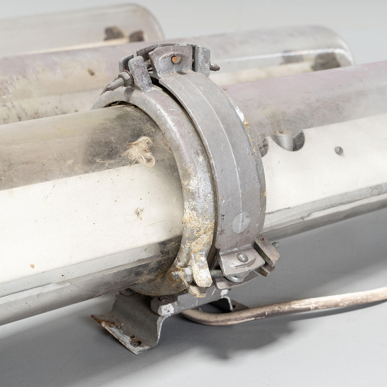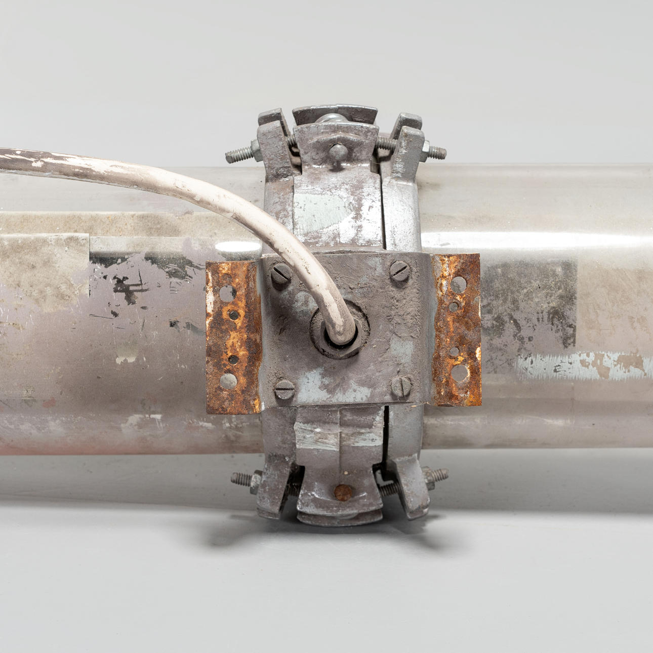 Glasrør og metalbeslag.