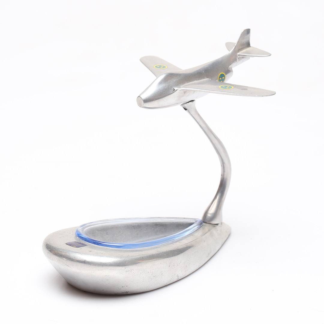 4446913. ASKEBÆGER MED FLYMODEL, metal, SAAB.