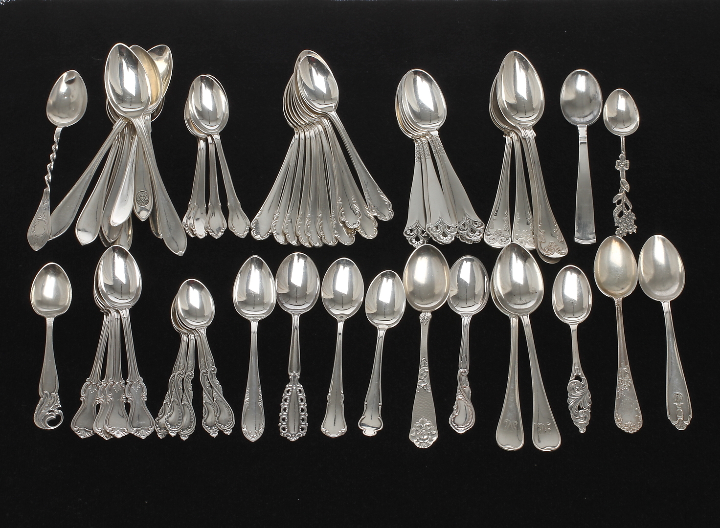 444886. MOCCA, KAFFE og TESKÆER, sølv, 1800-/1900-tallet.