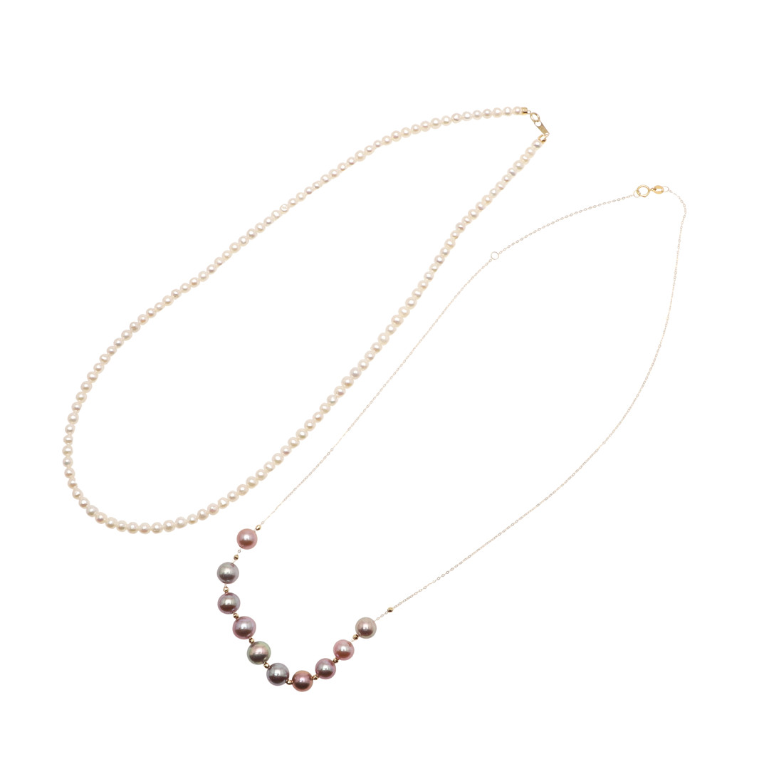 4449121. TO MODERNE KULTIVEREDE PERLEHALSKÆDER.