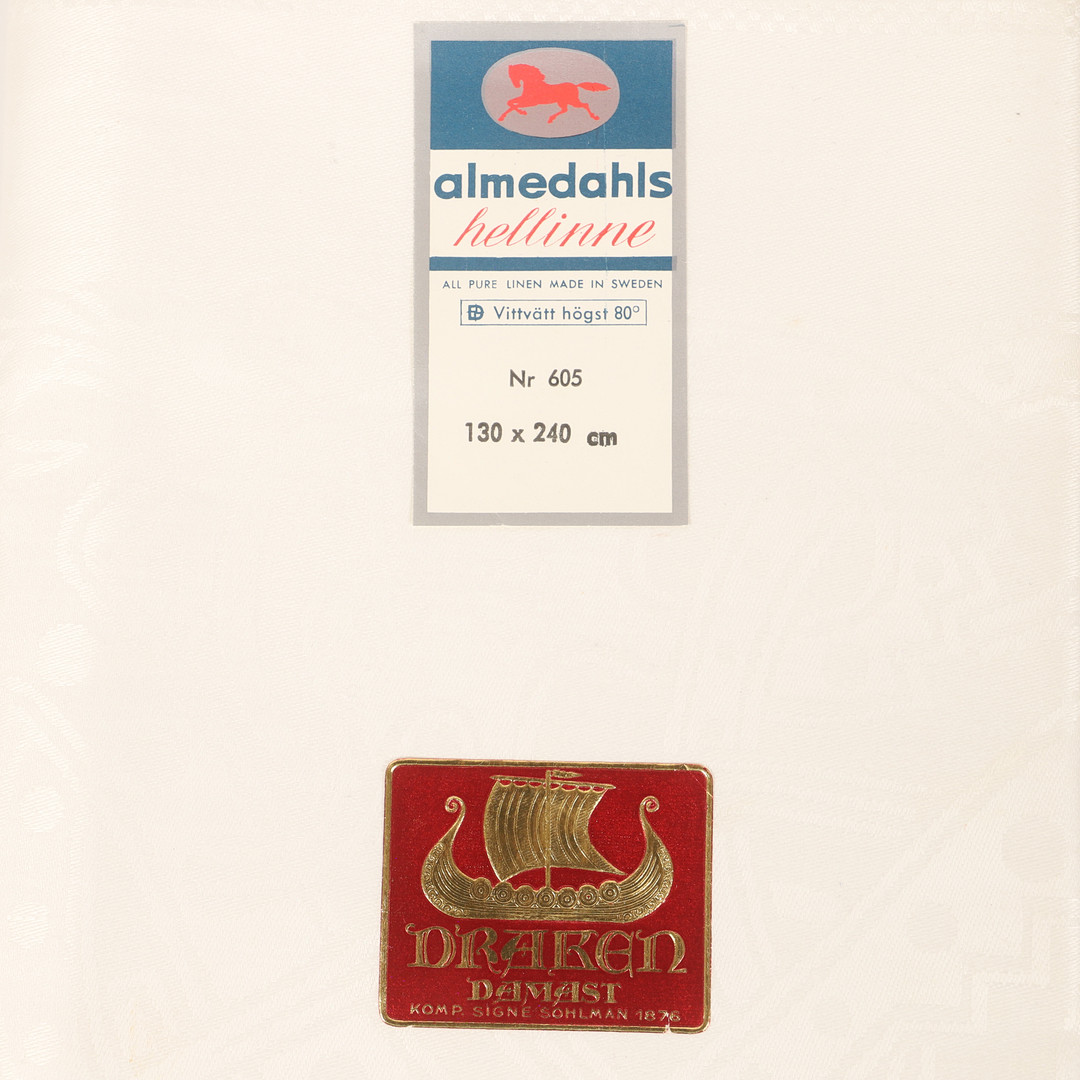 4449873. SIGNE SOHLMAN. Lærred, dragemønstret linneddamask, Almedahls.