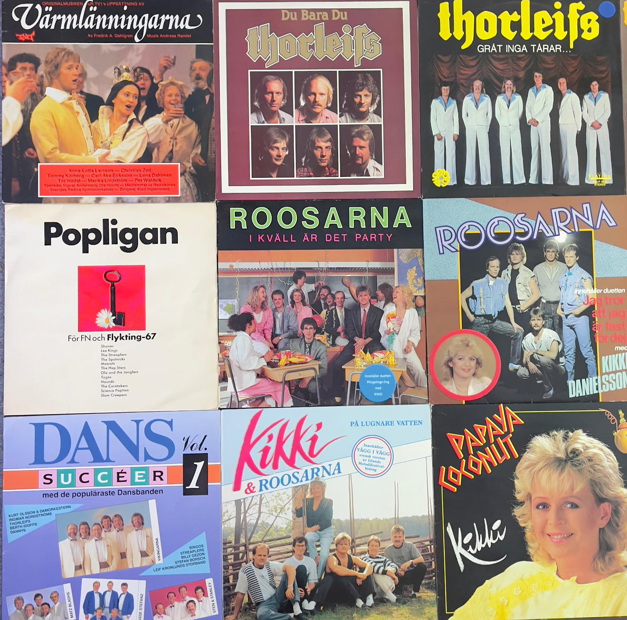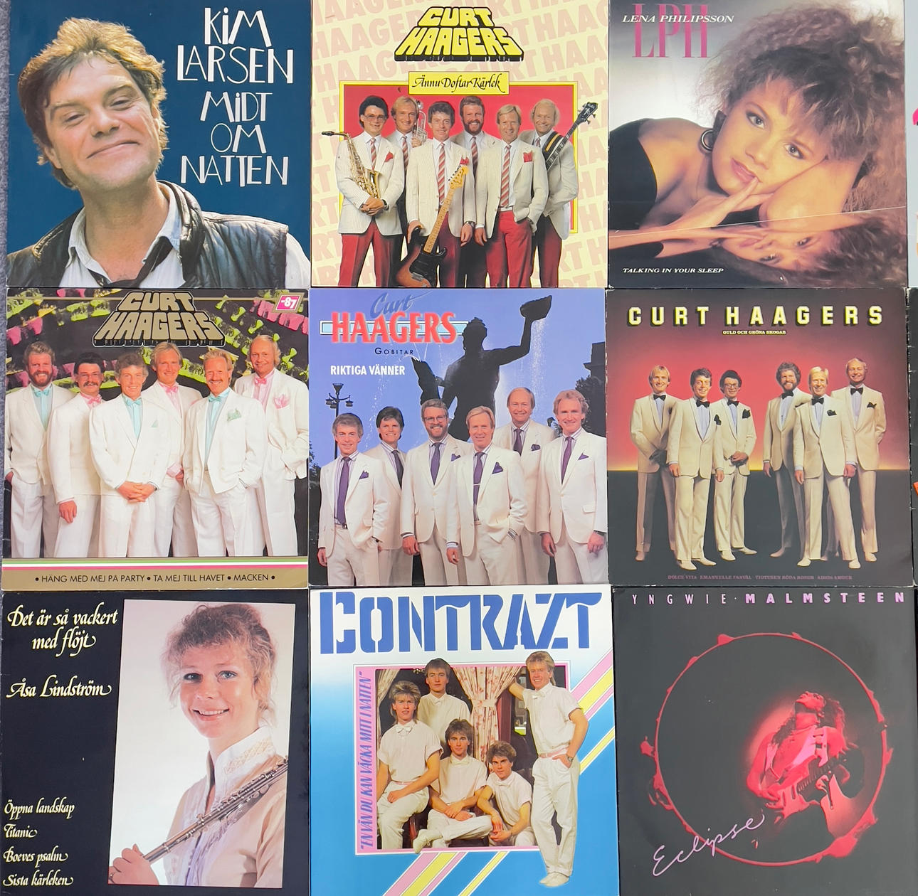 Omkring 82 LP'er med svenske kunstnere, Kikki Danielsson, Lotta Engberg, Carola og andre.