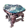 En fremragende kinesisk udskåret fluoritblækslibesten med drænhuller i en naturalistisk form, der ligner en frossen sø, monteret på en naturlig rodtræbase, W. 63cm, H. 53cm.