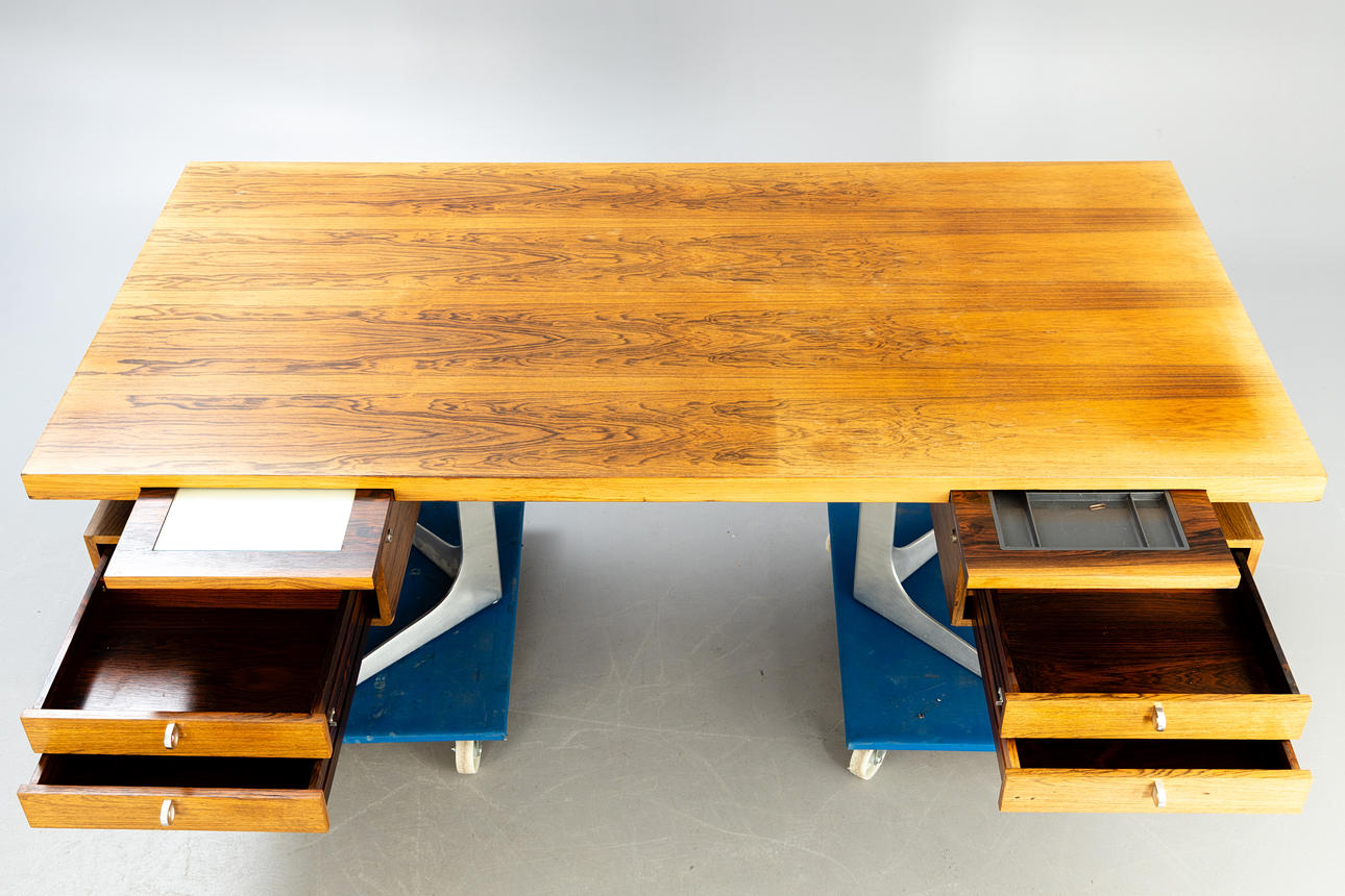 4451810. HERBERT HIRCHE. Skrivebord, „Top Program“, Rio palisander og aluminium, 1960'erne/70'erne.