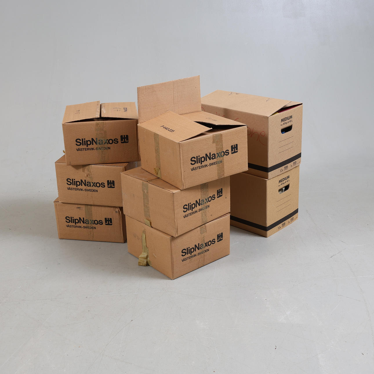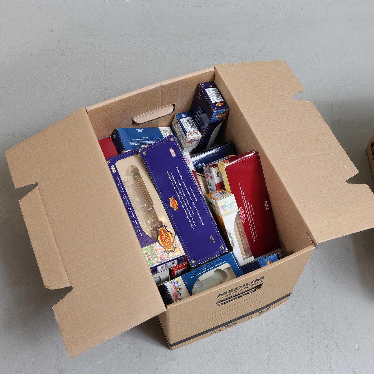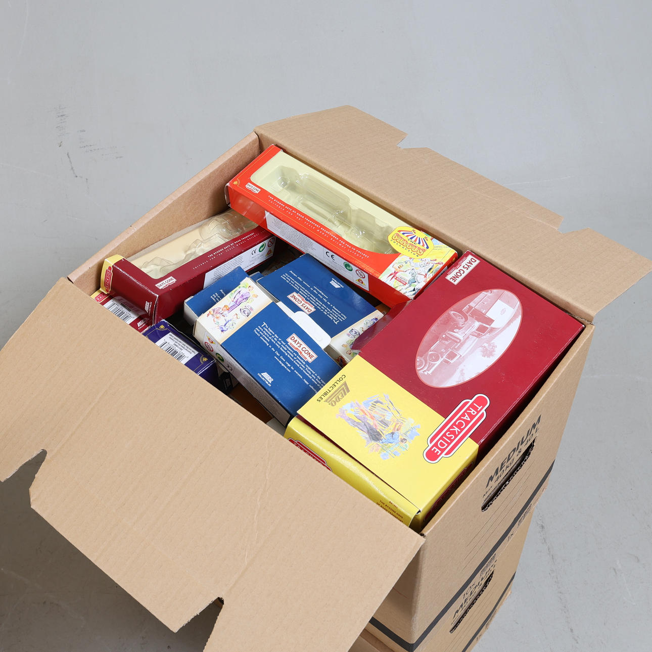 8 kasser indeholdende originale kartoner af legetøjsbiler.