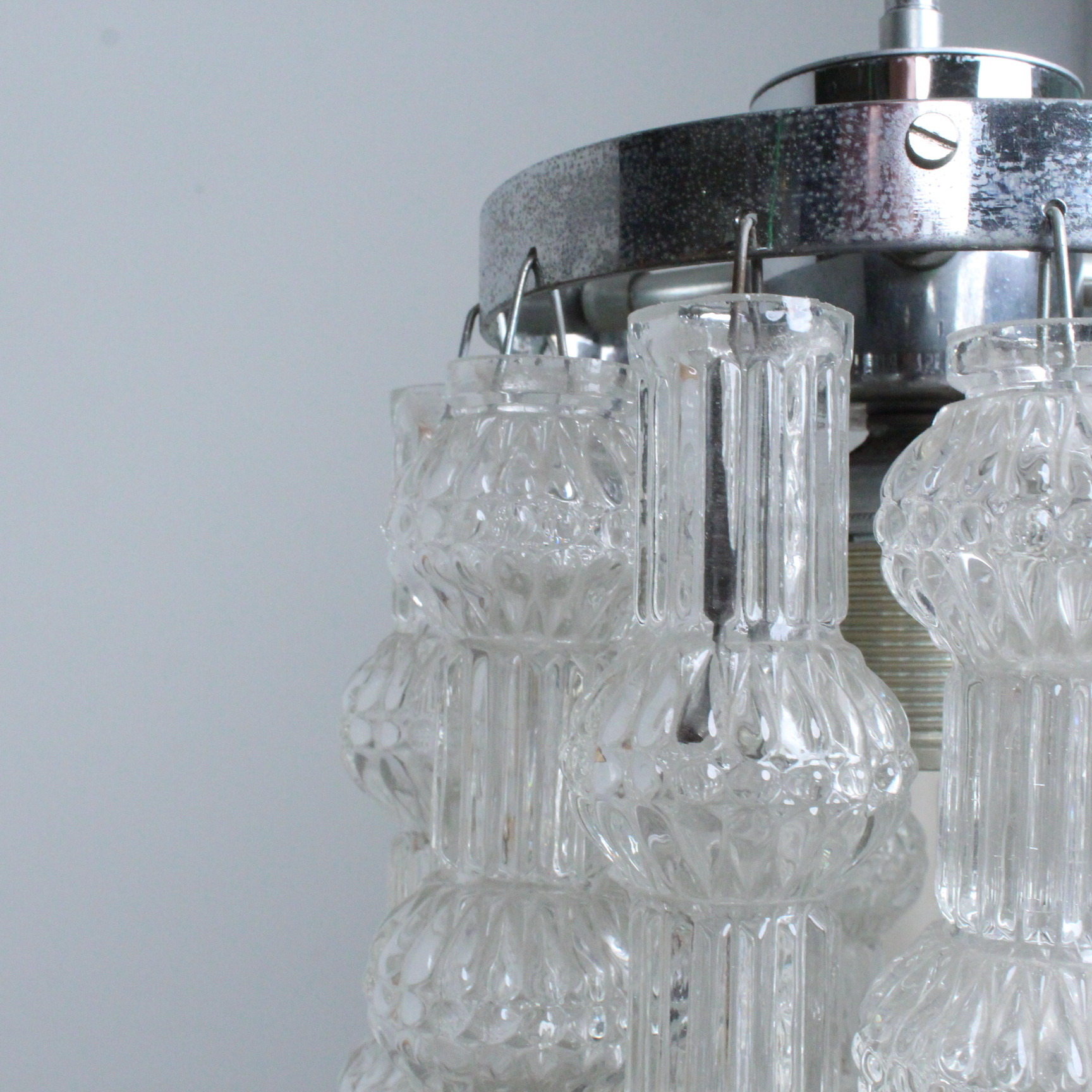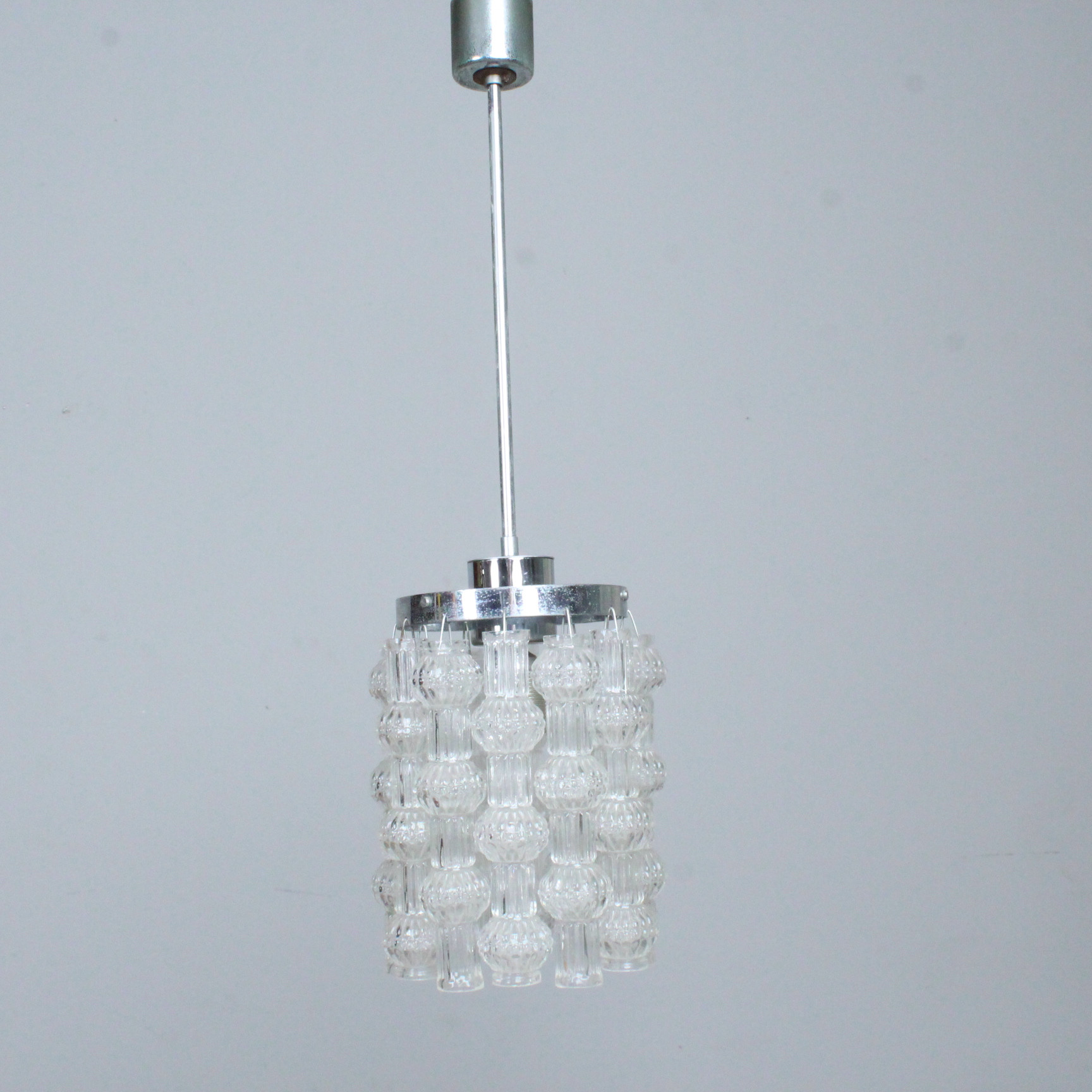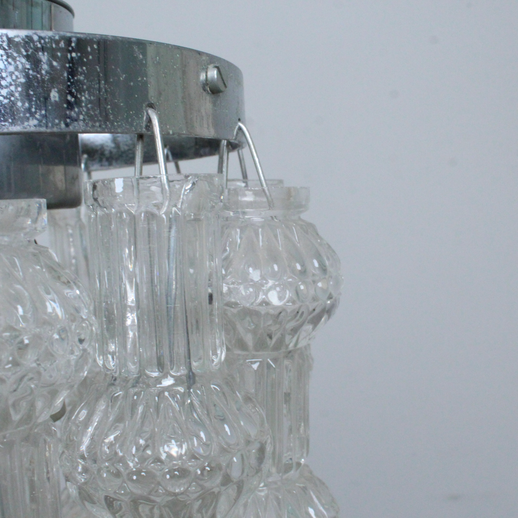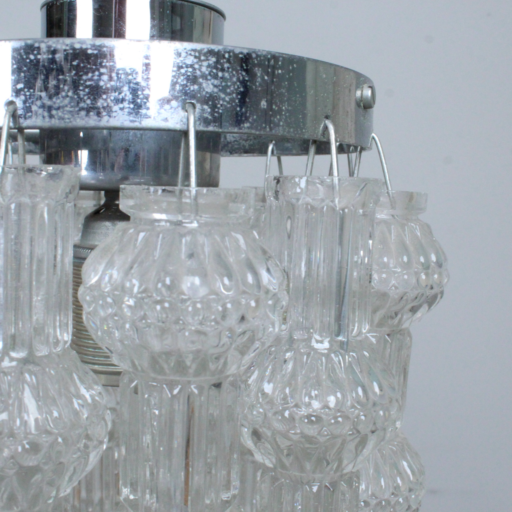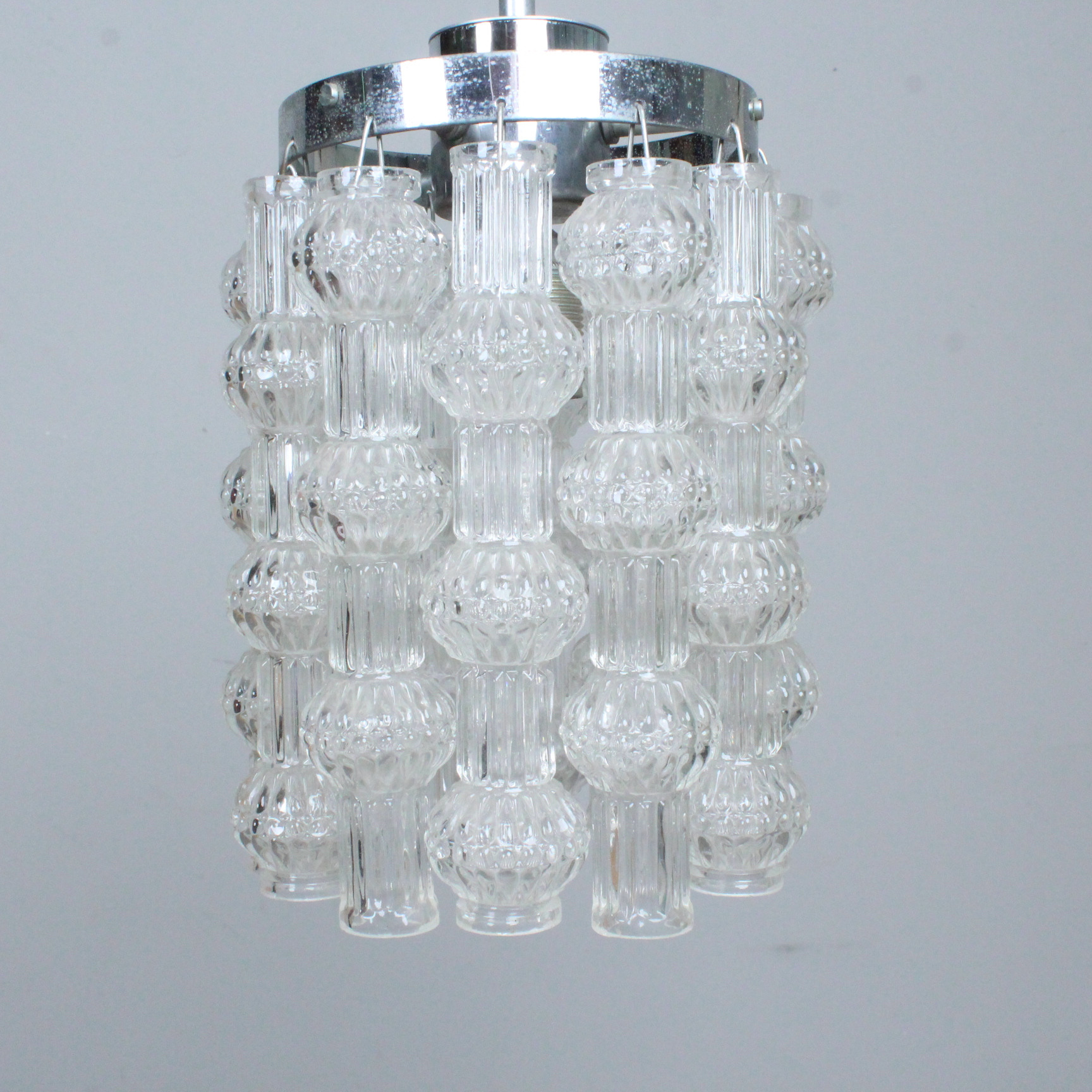 4452961. J.T. KALMAR. TILSKREVET. J. T. Kalmar for Kalmar Lighting, loftslampe, krystalglas, krom, 1970'erne.