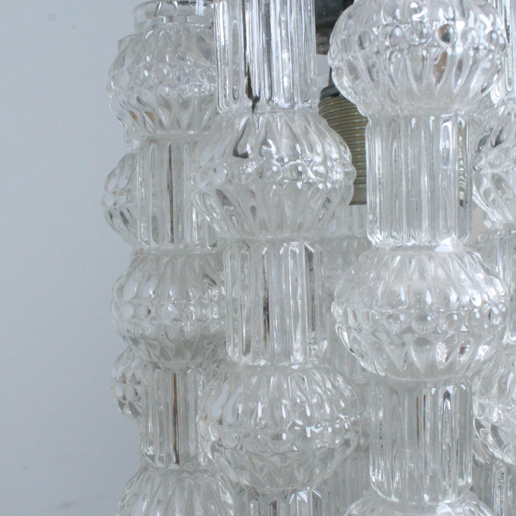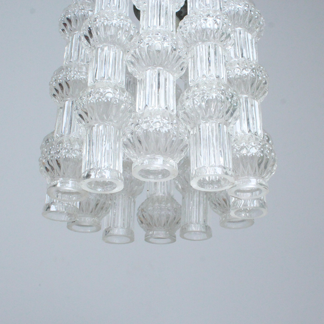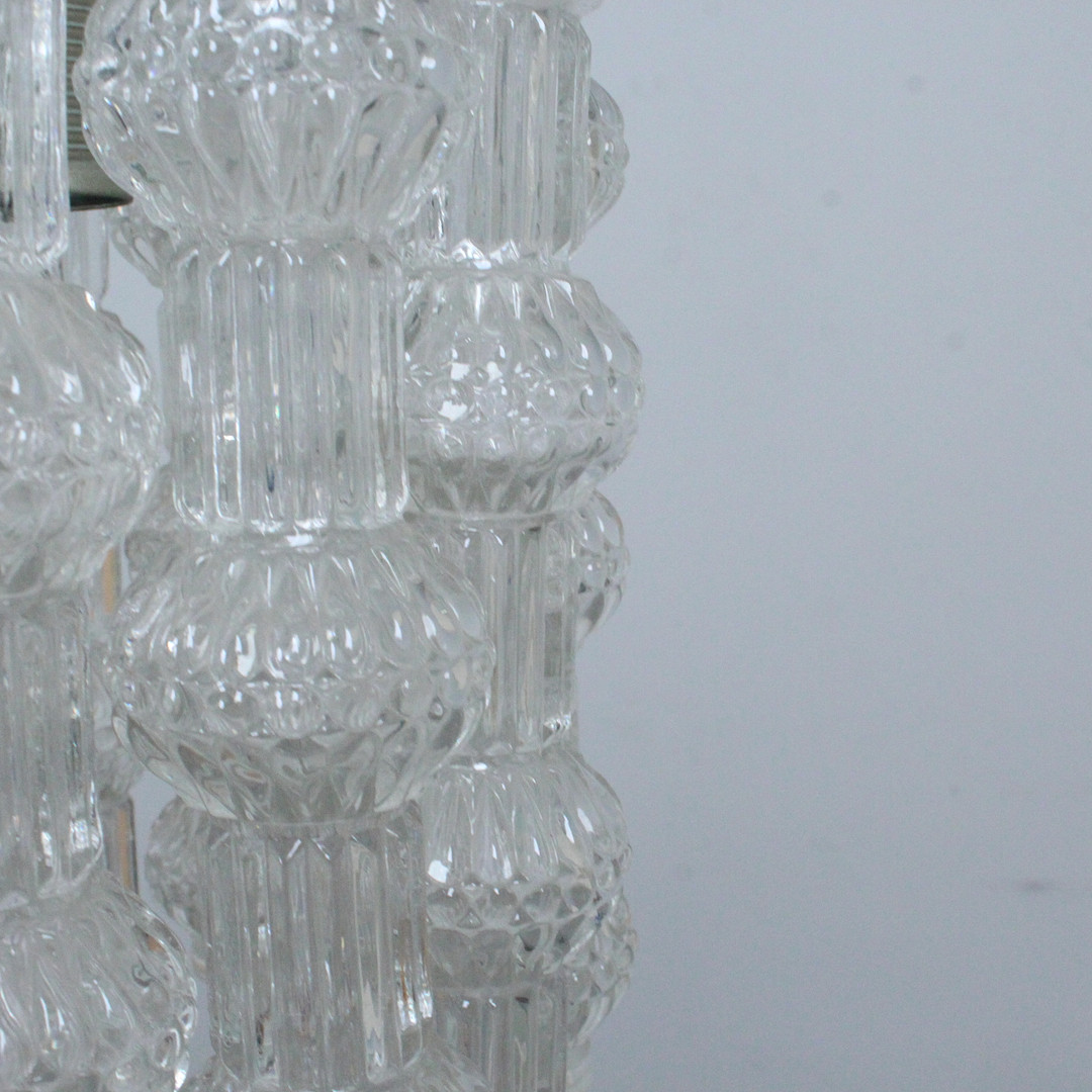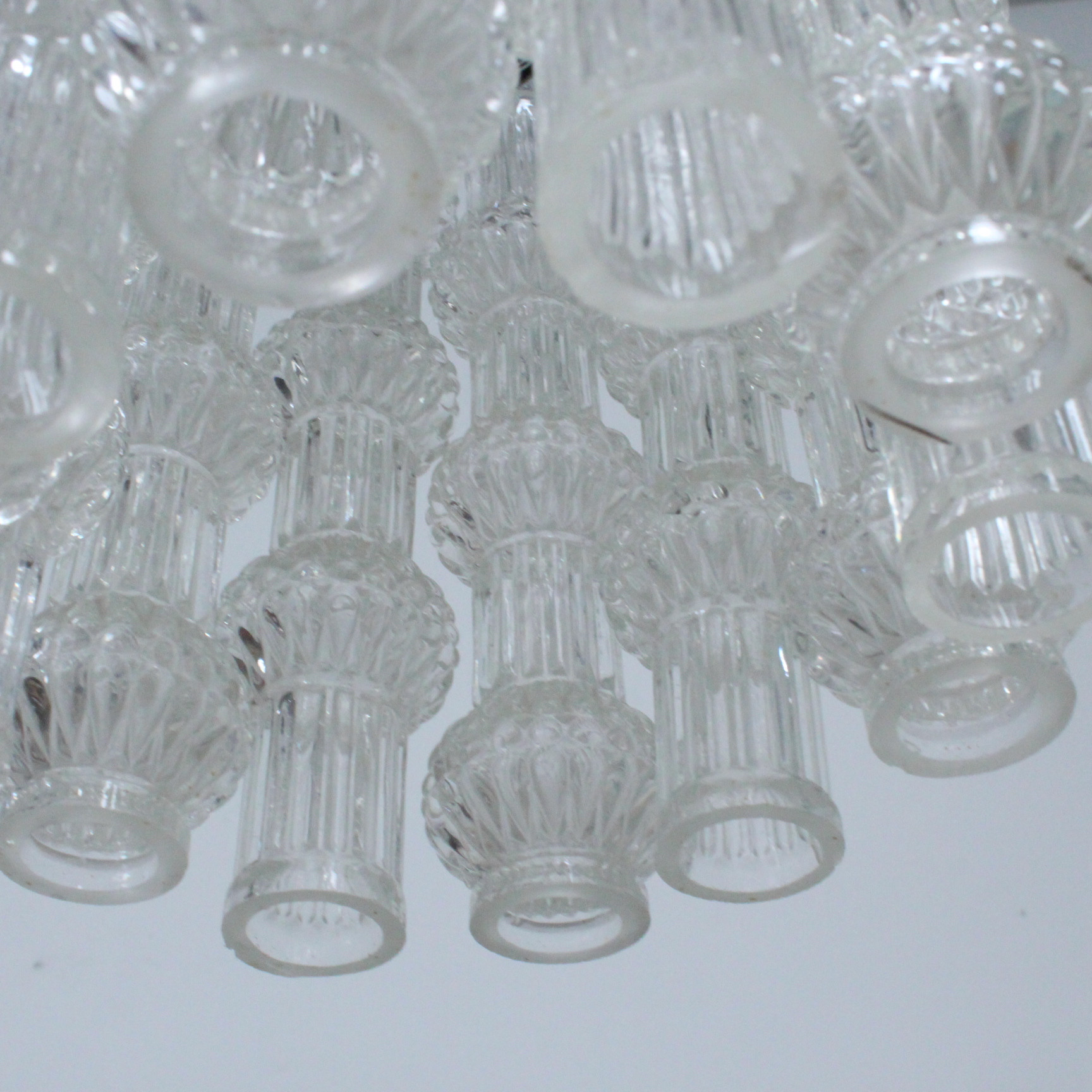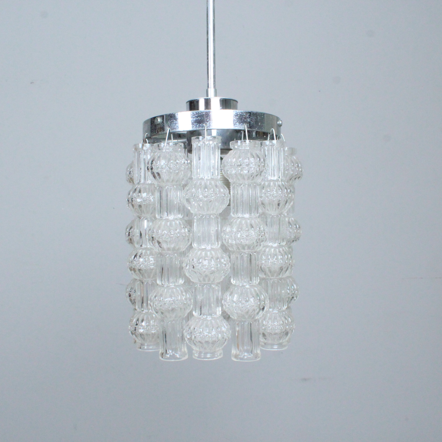 4452961. J.T. KALMAR. TILSKREVET. J. T. Kalmar for Kalmar Lighting, loftslampe, krystalglas, krom, 1970'erne.