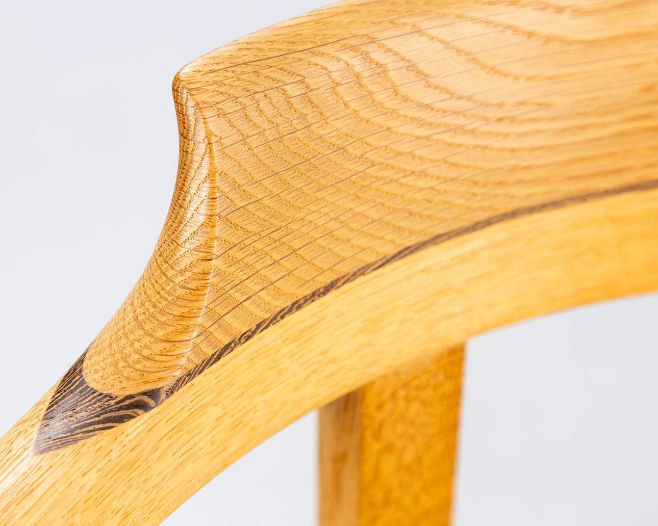 Design: 1975. Ramme af egetræ Strækket papirledningssæde Indskrevet med producentens klæbende etiket.