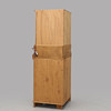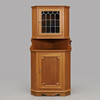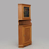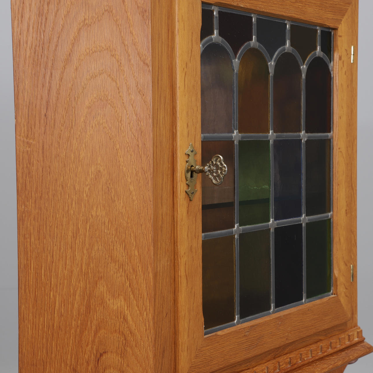 Ich. Topdør med farvet glas, bunddør, skåret dekorativ frise. Belysningsfunktion. Bredde 81, dybde 58, højde 172 cm.