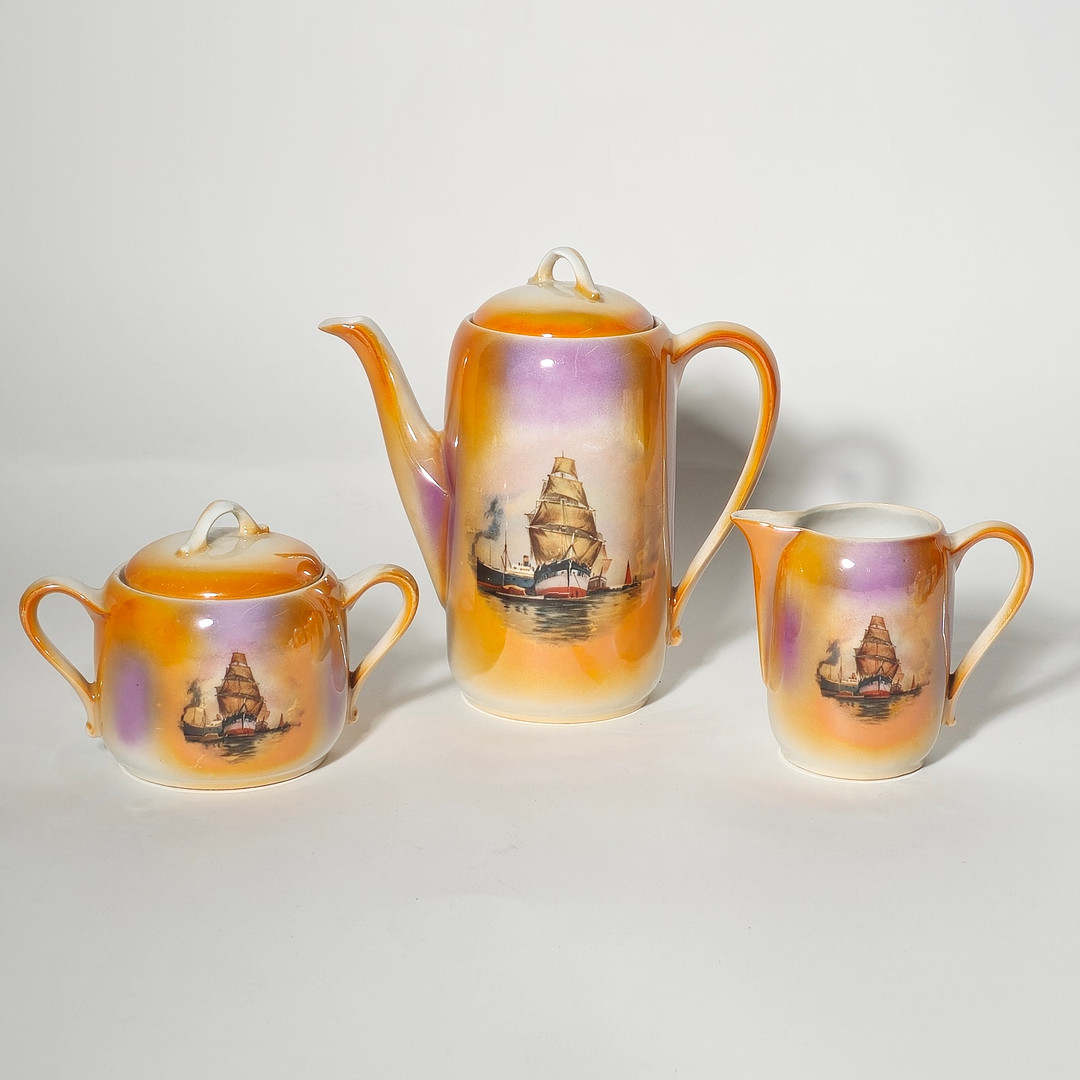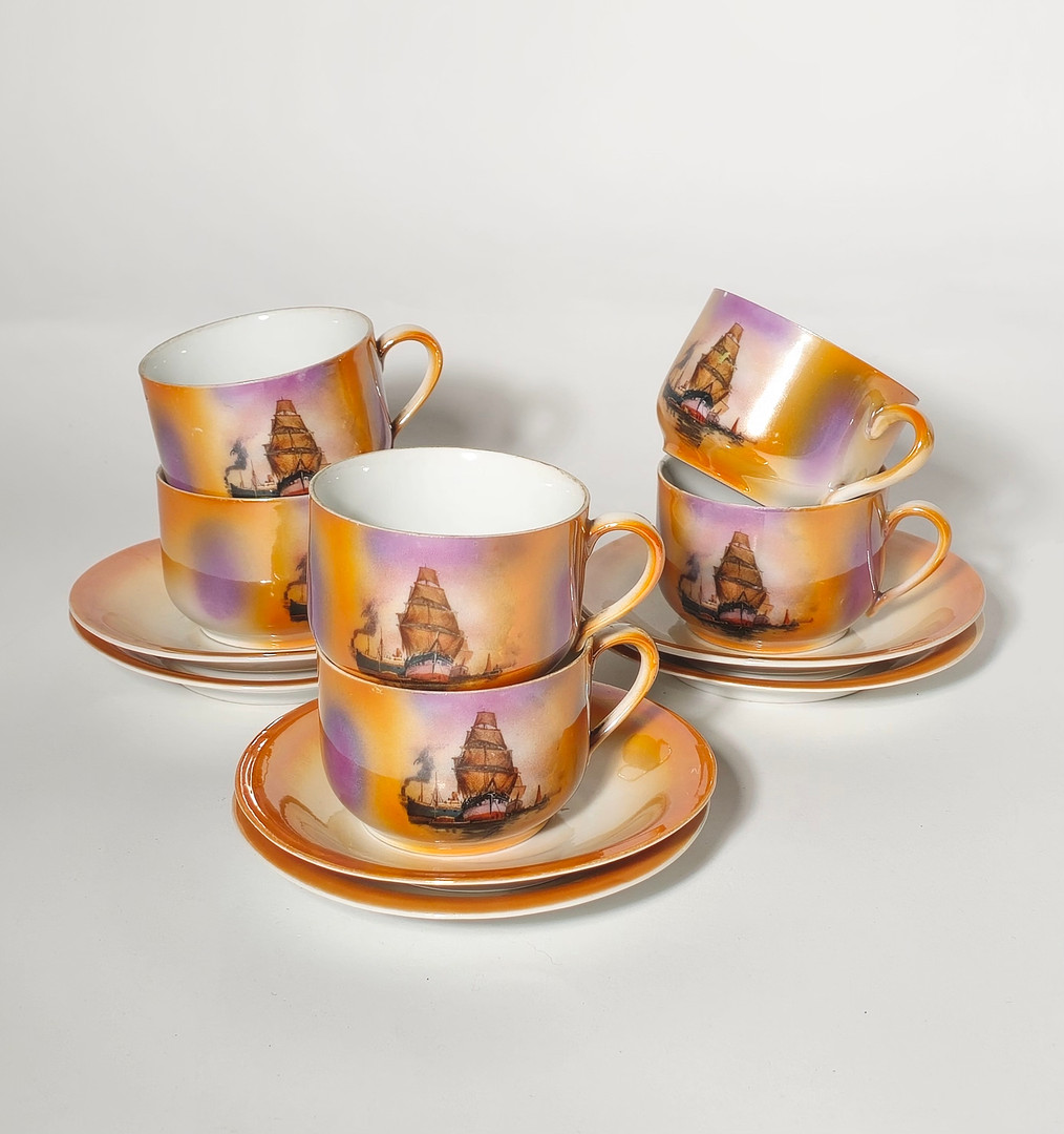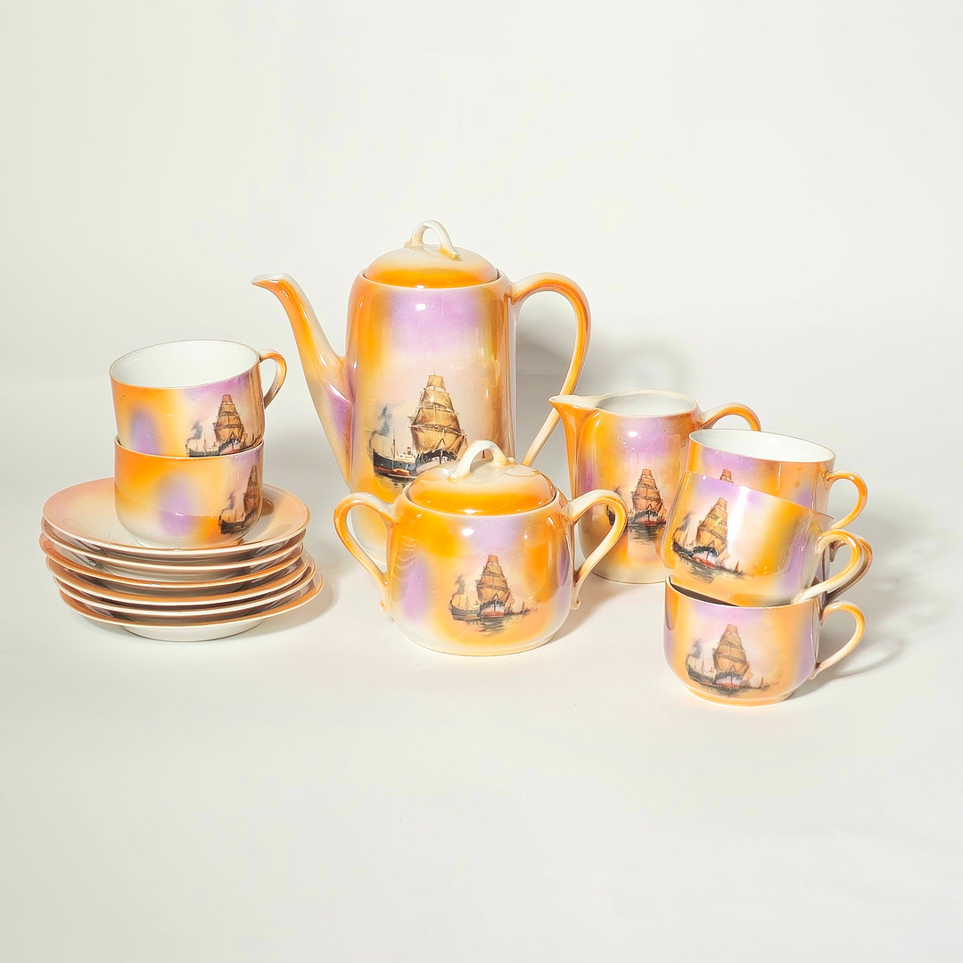 4456362. 6-SERVERET RIBBET KAFFESÆT.