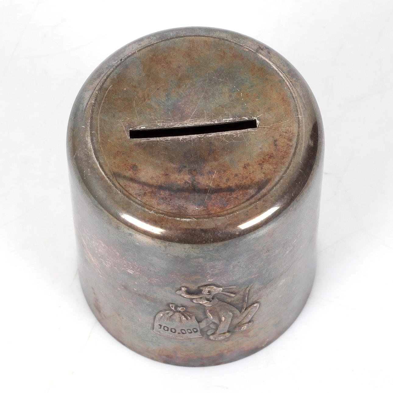 Pengeboks, nysølv med reliefindretning af Pluto, Disney.