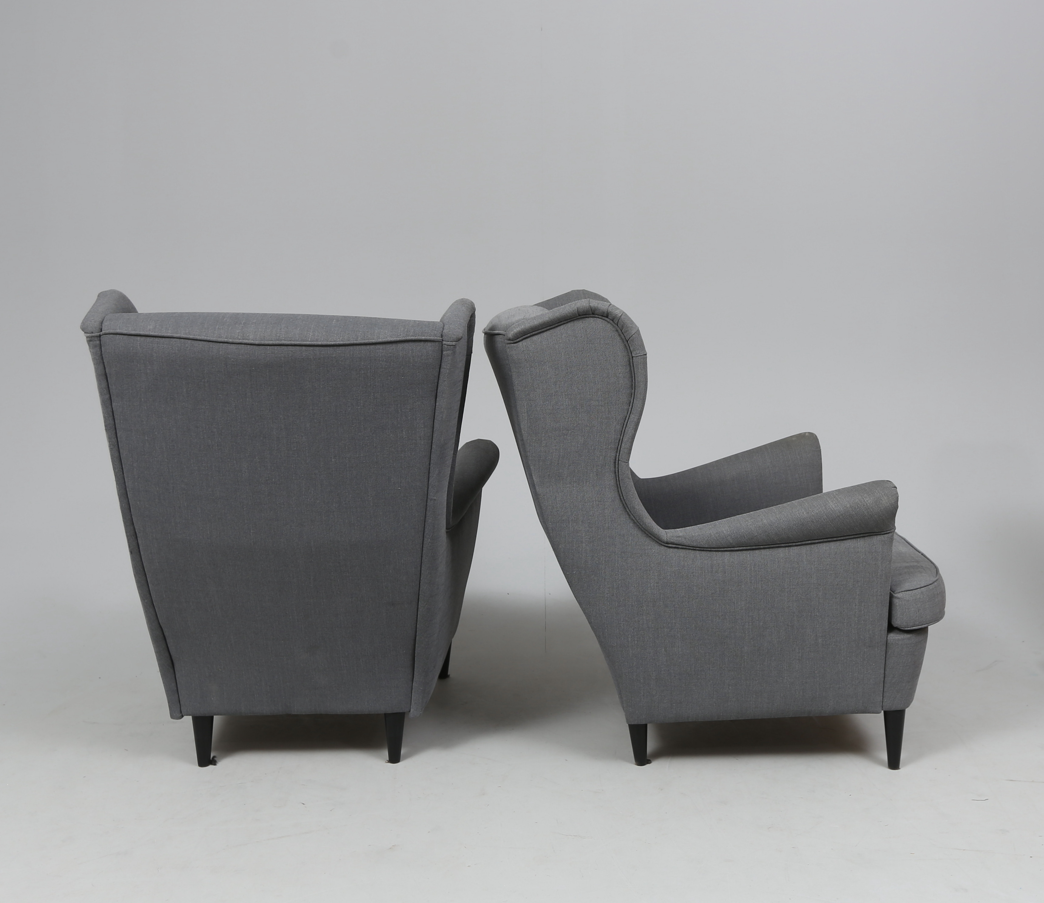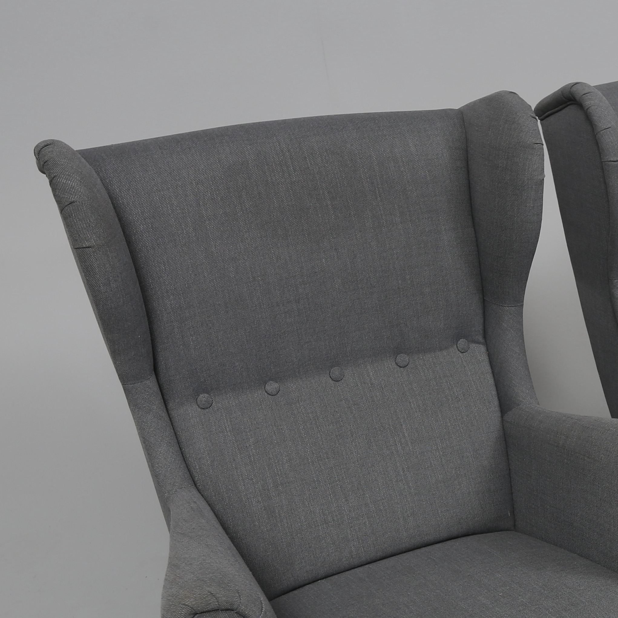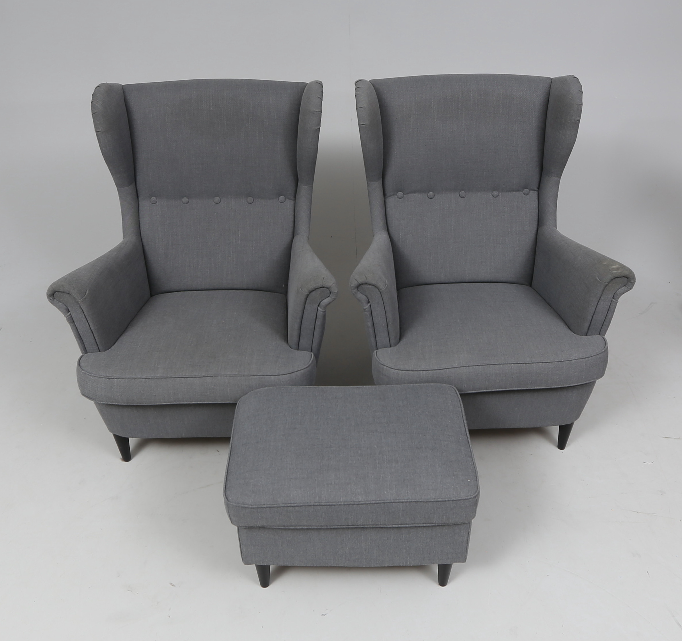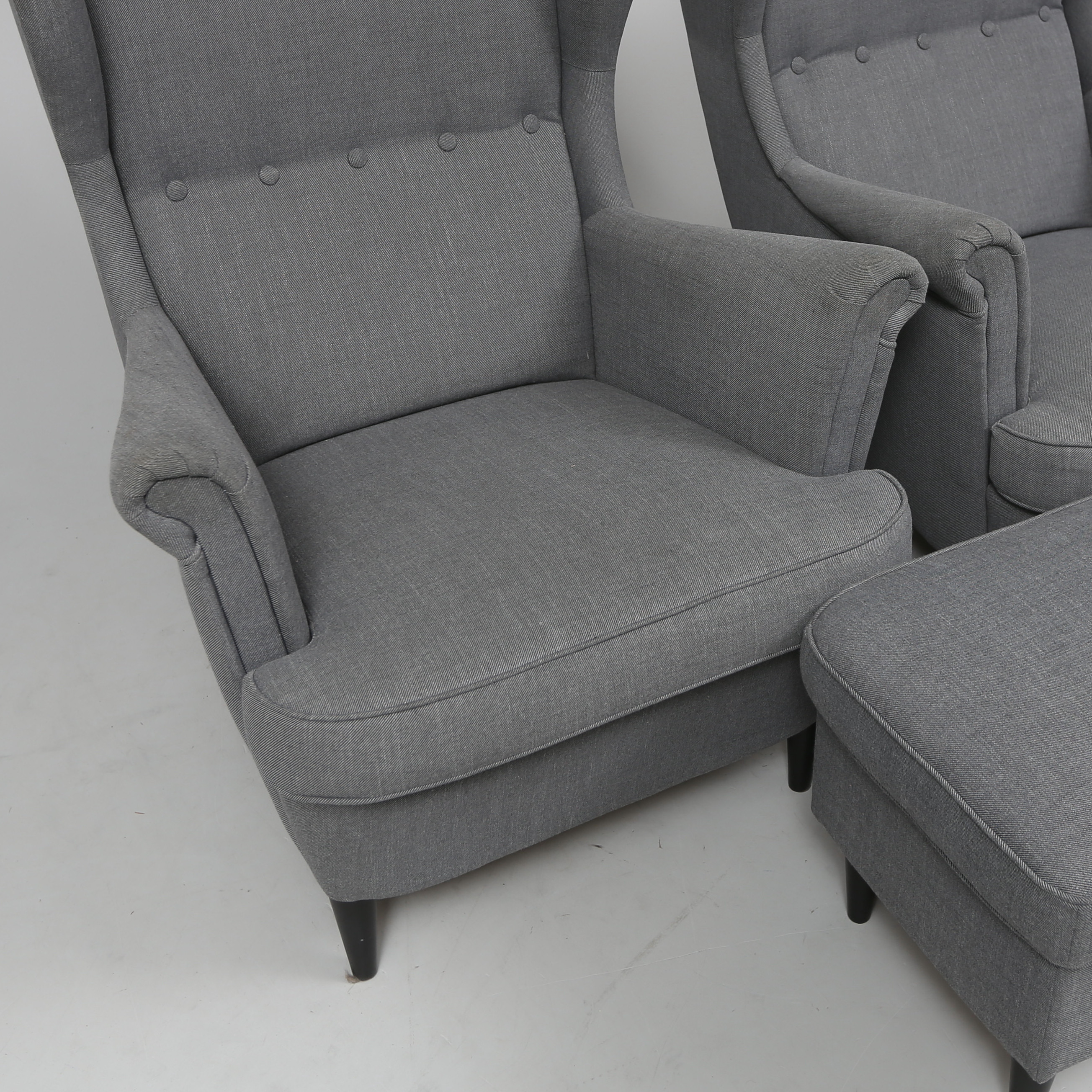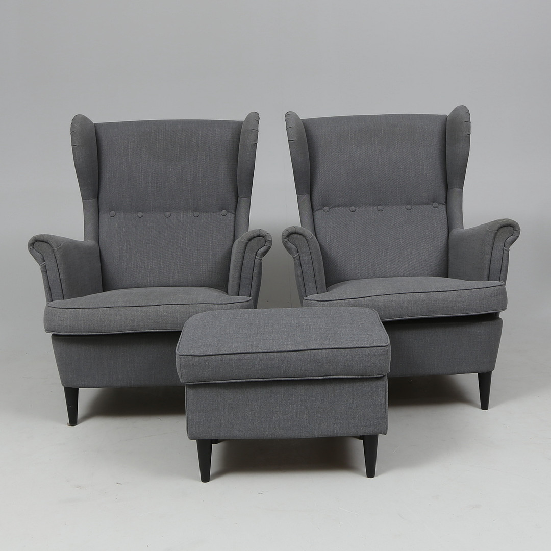 4458578. STRANDMON, Ørepatch-lænestole, 2 stk og skammel.