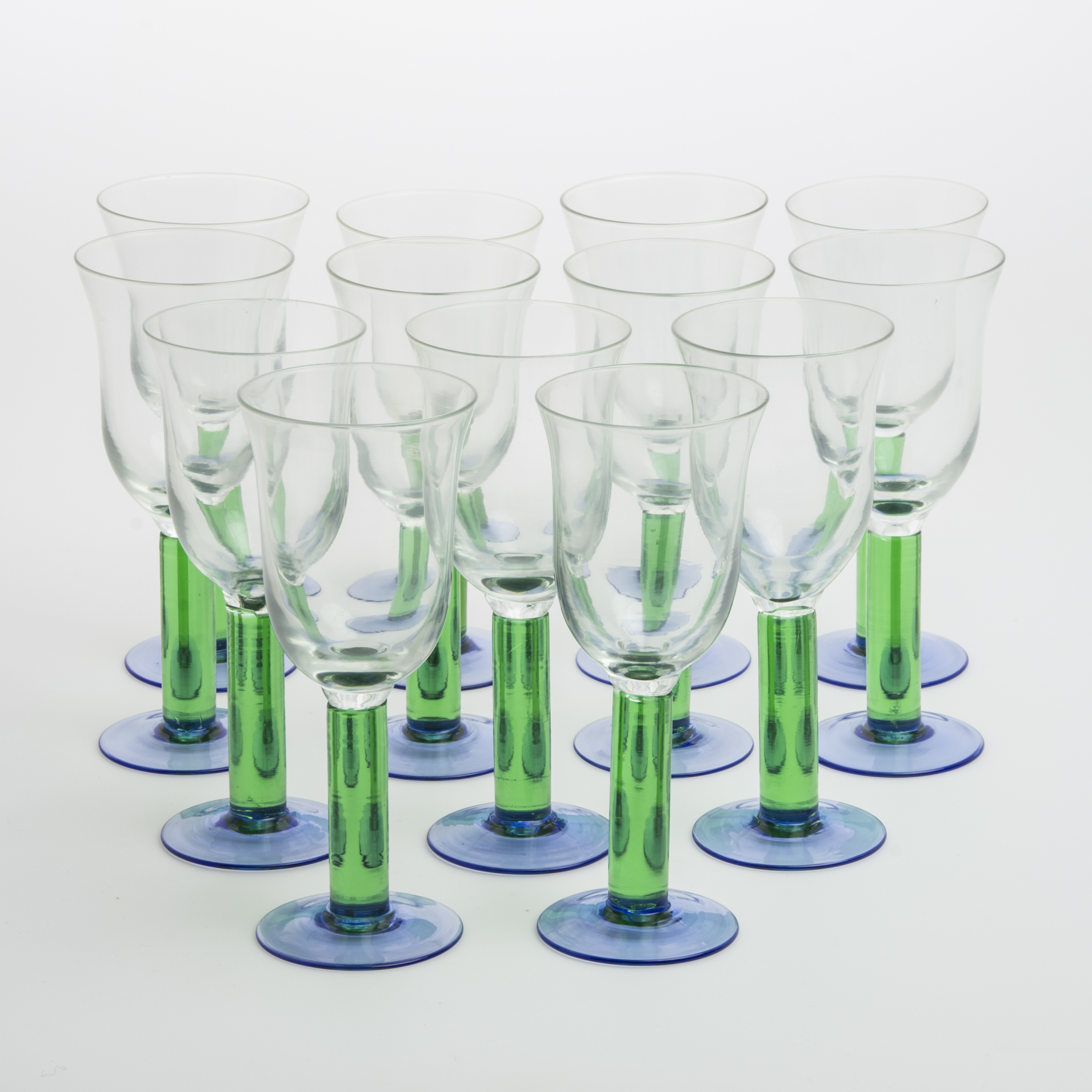 445985. VINGLAS, 13 stk. med grøn/blå bund.