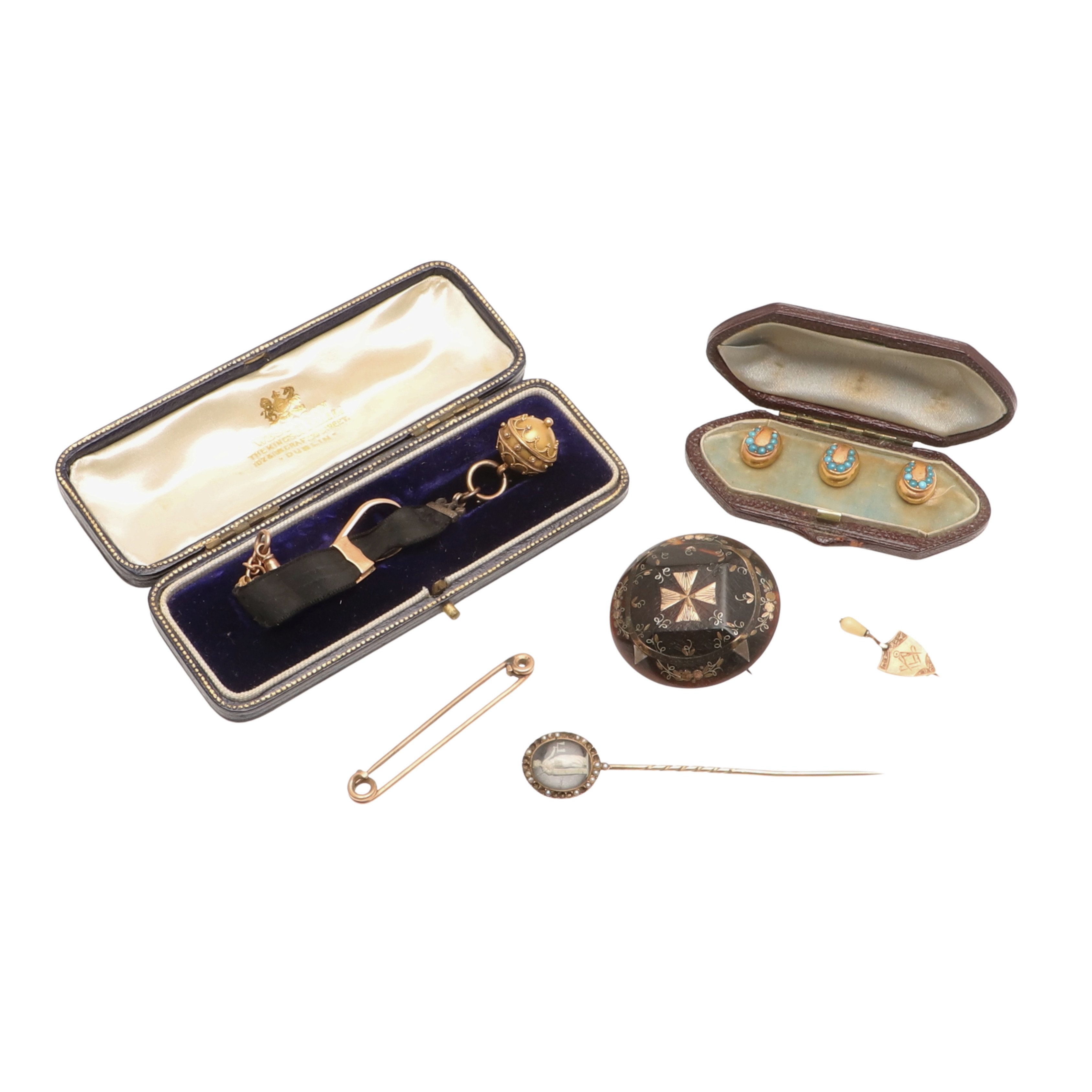 4460897. EN VICTORIANSK SKILDPADDEPIKEARBEJDSBROCHE OG ANDRE GENSTANDE.