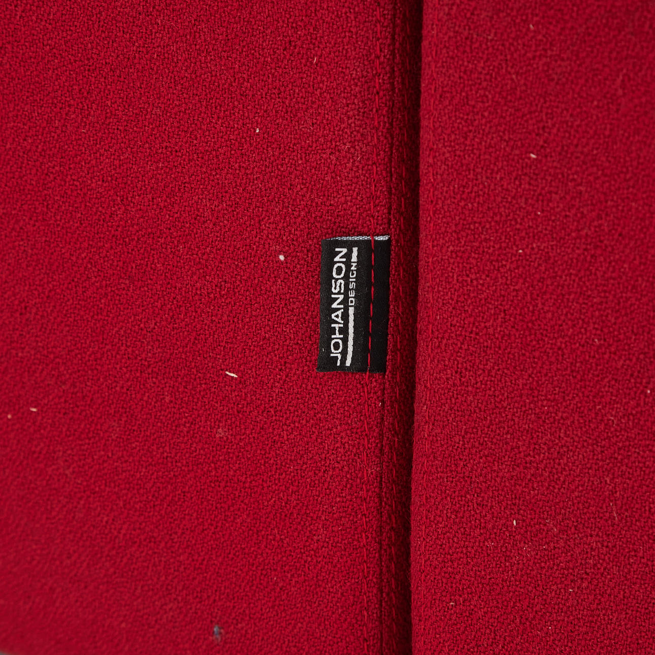 ALEXANDER LERVIK. Sofa, 3 moduler, „U-sit 80", Johanson Design, Markaryd, ben i forkromet metal, rød tekstilbetræk.