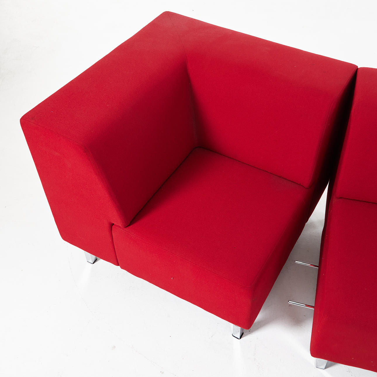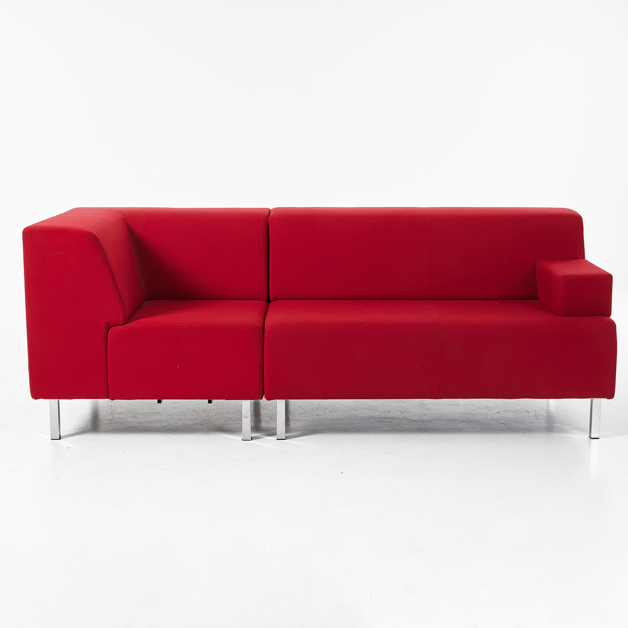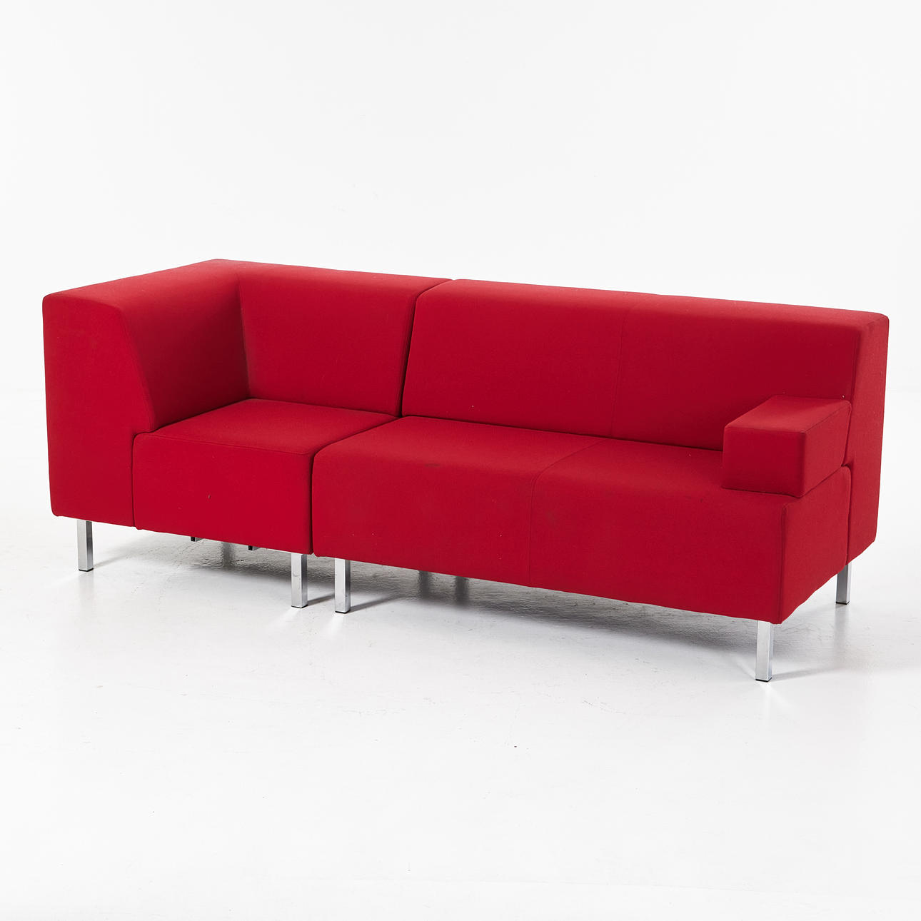 4463525. ALEXANDER LERVIK. Sofa, 3 moduler, „U-sit 80", Johanson Design, Markaryd, ben i forkromet metal, rød tekstilbetræk.