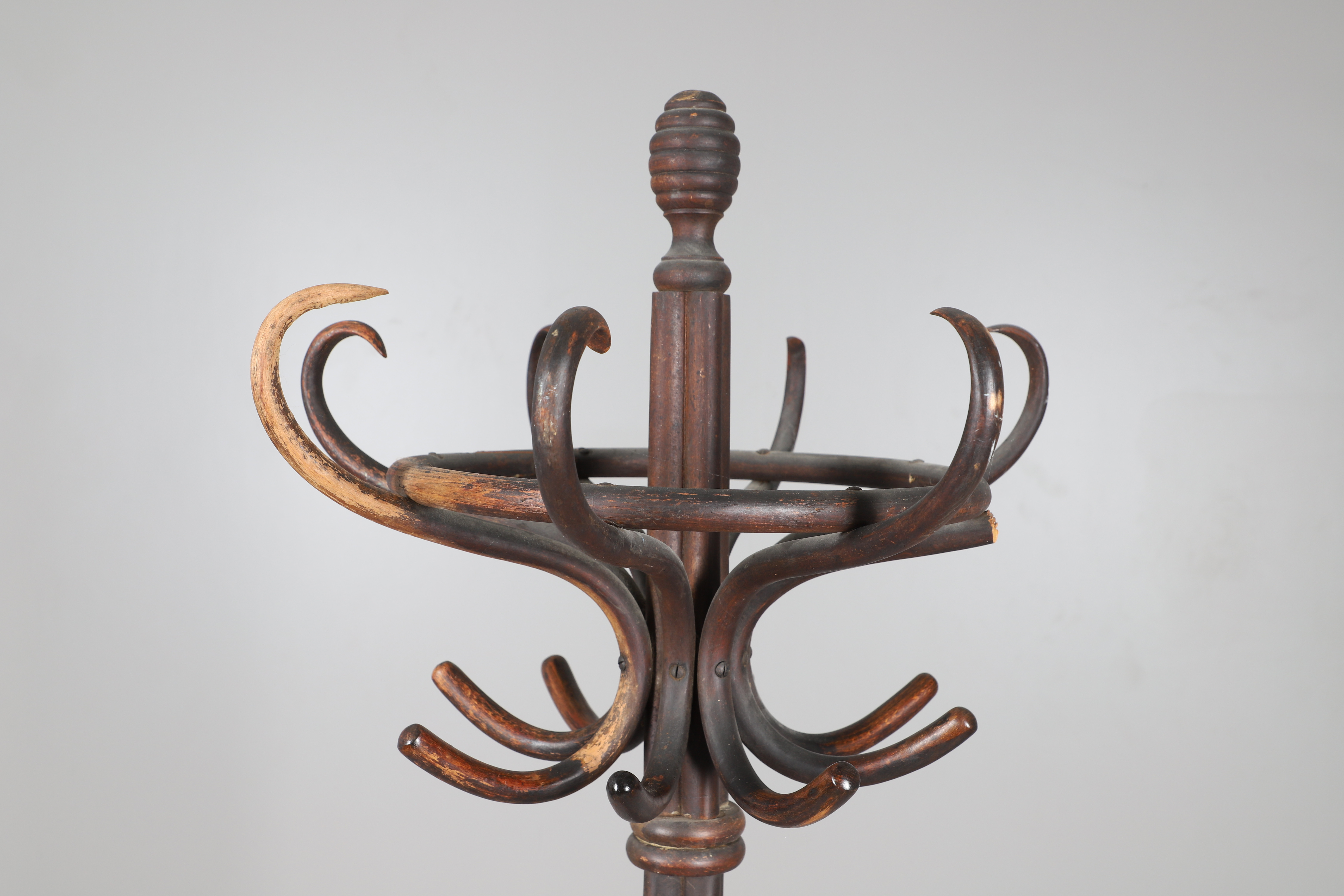 4464046. EN BEJDSET BØJET TRÆFRAKKE/HATSTAND.