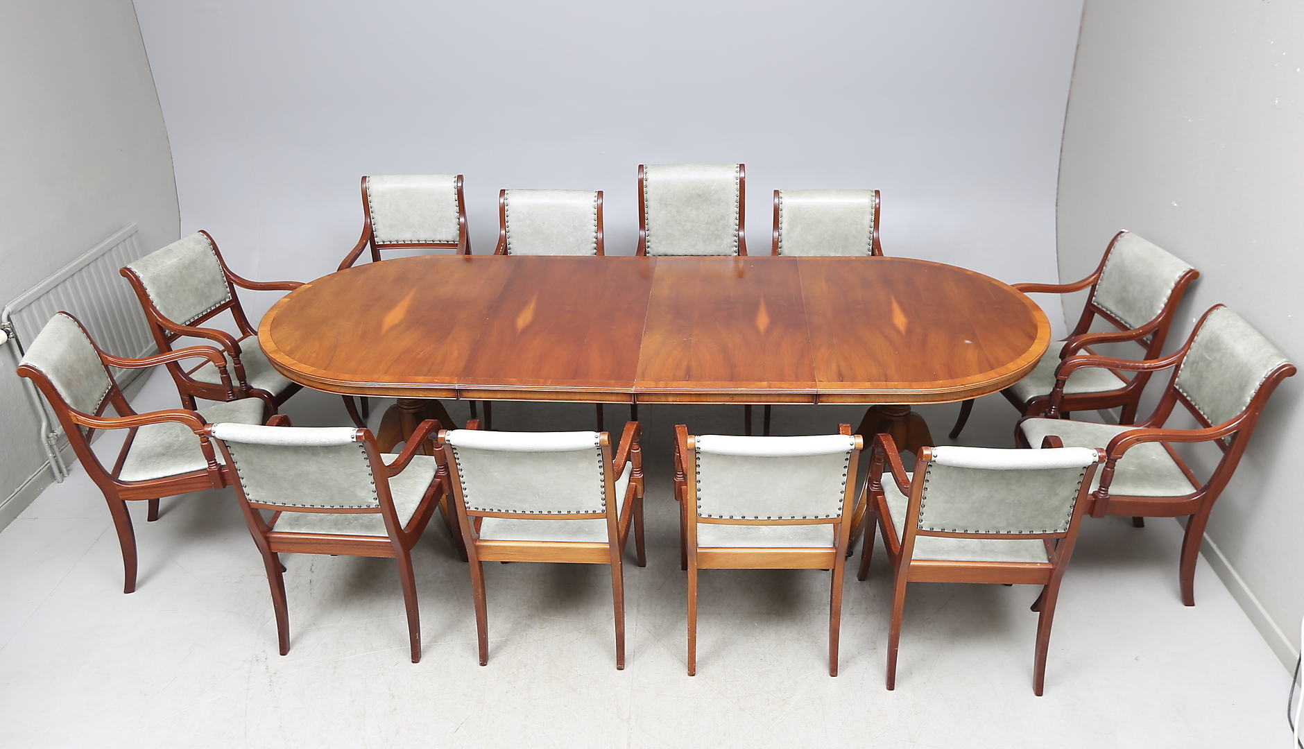 446464. SPISESUMSMØBLER, 13 stk., engelsk stil, 20. århundrede.