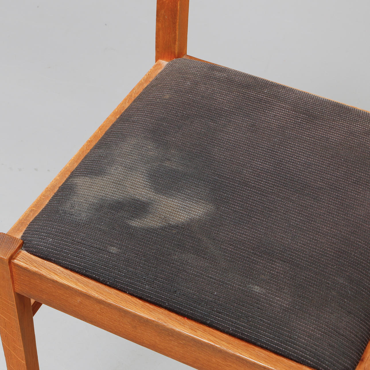 Stol med polstret og stofbetrukket sæde. Højde 83 cm, sædehøjde ca. 45 cm.