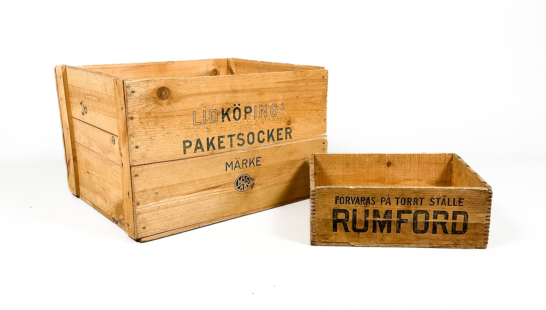 4465623. TRÆKASSER, 2 stk, „Lidköpings Paketsocker & Rumford“.