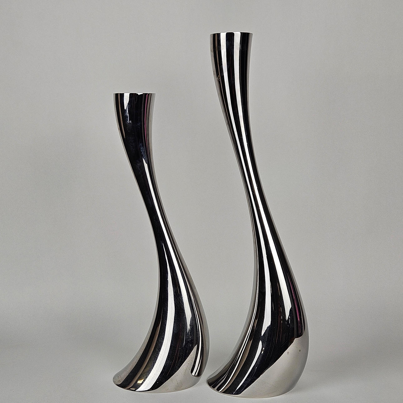 CONSTANTIN WORTMANN. Gulvlysestager, 2 stk. „Cobra“, rustfrit stål, Georg Jensen, Danmark.