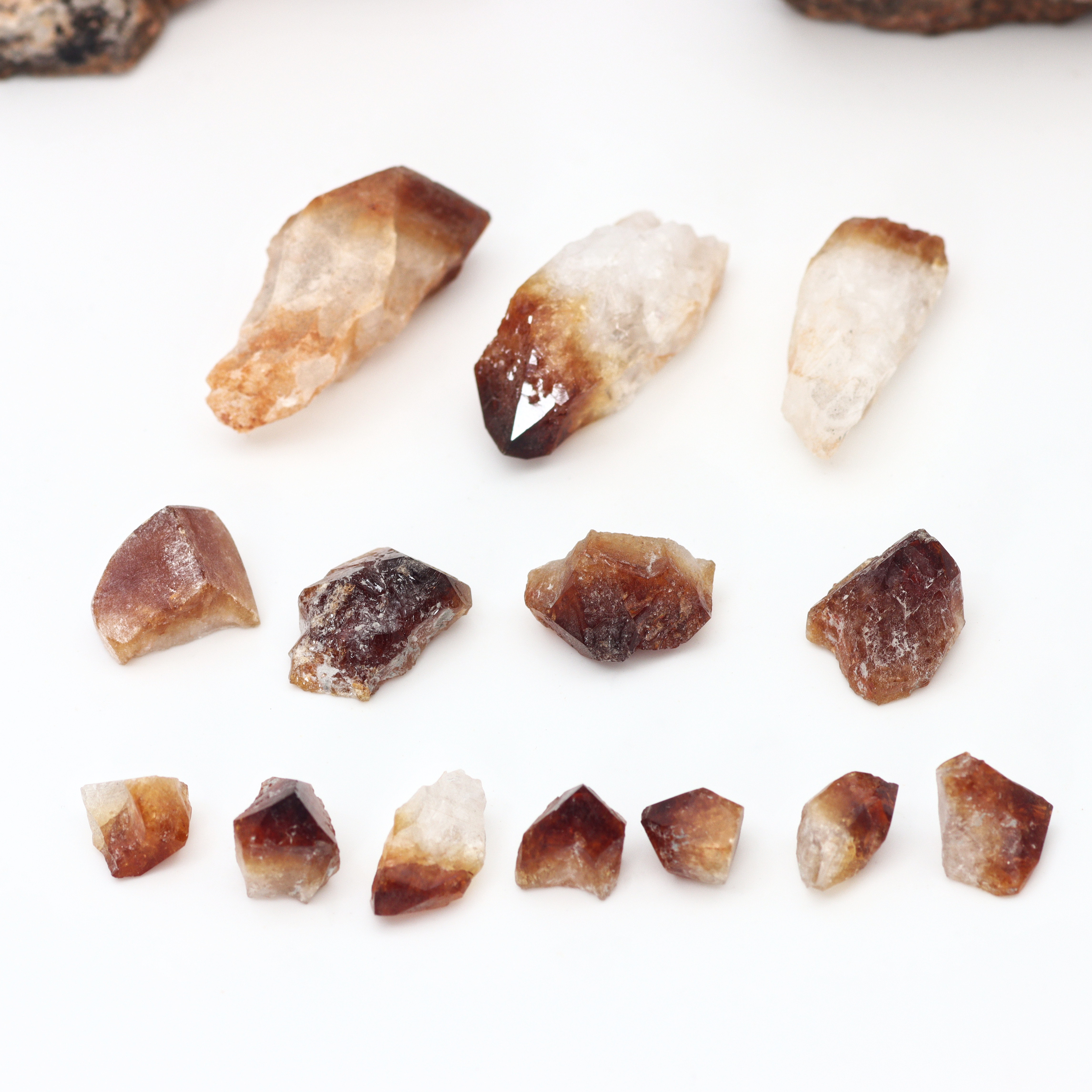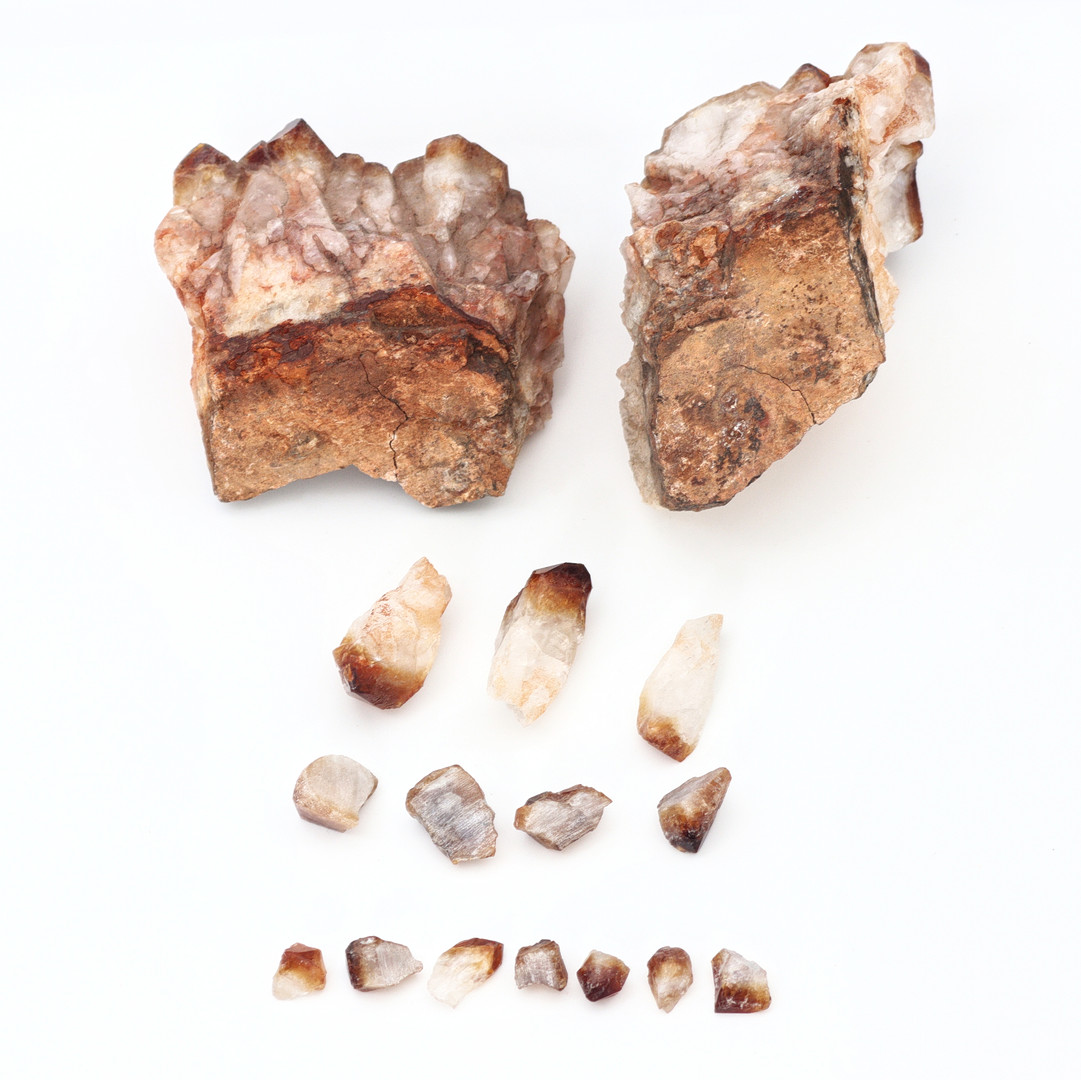 4467942. 2 KLYNGER BRÆNDT CITRIN, UKLIPPET, RÅ.