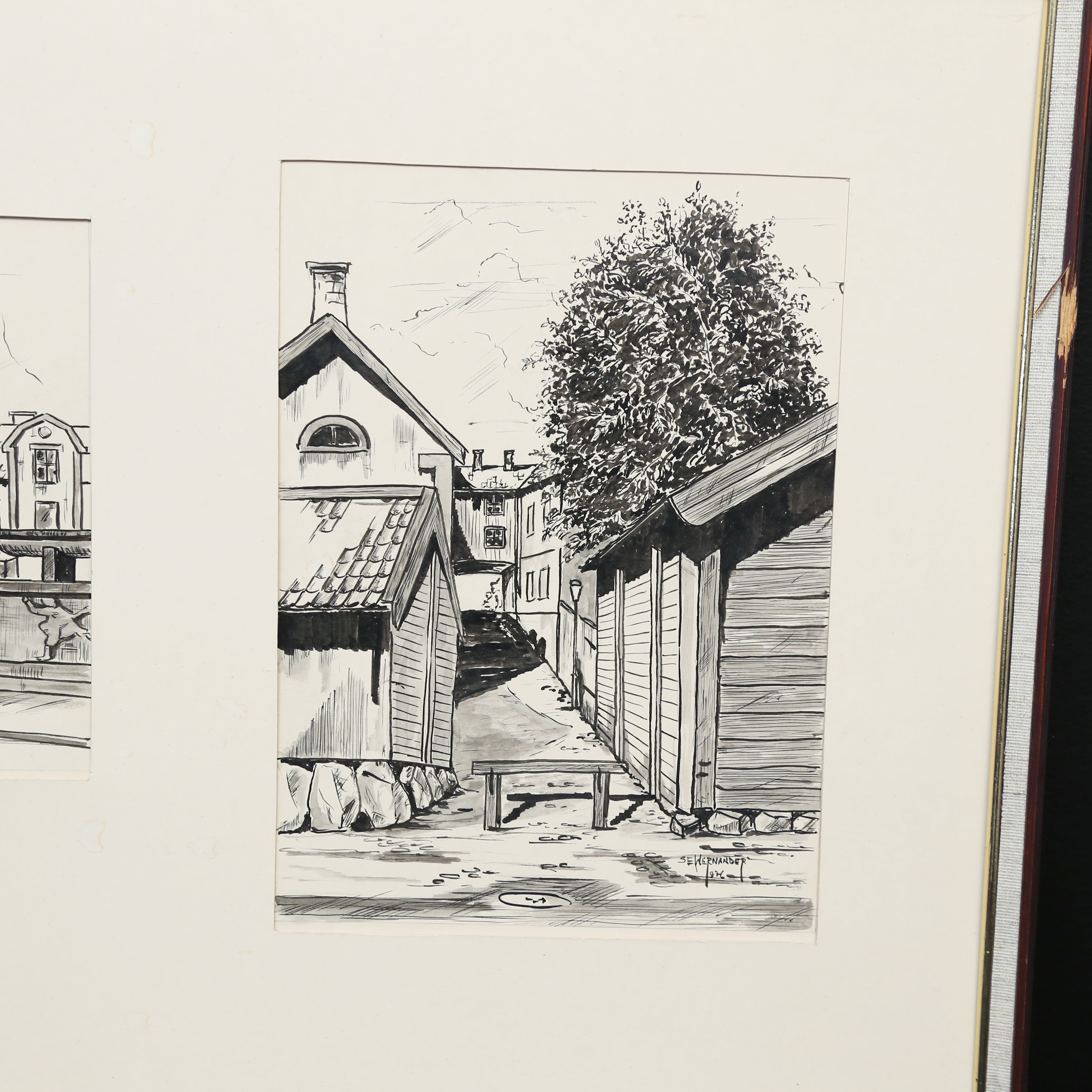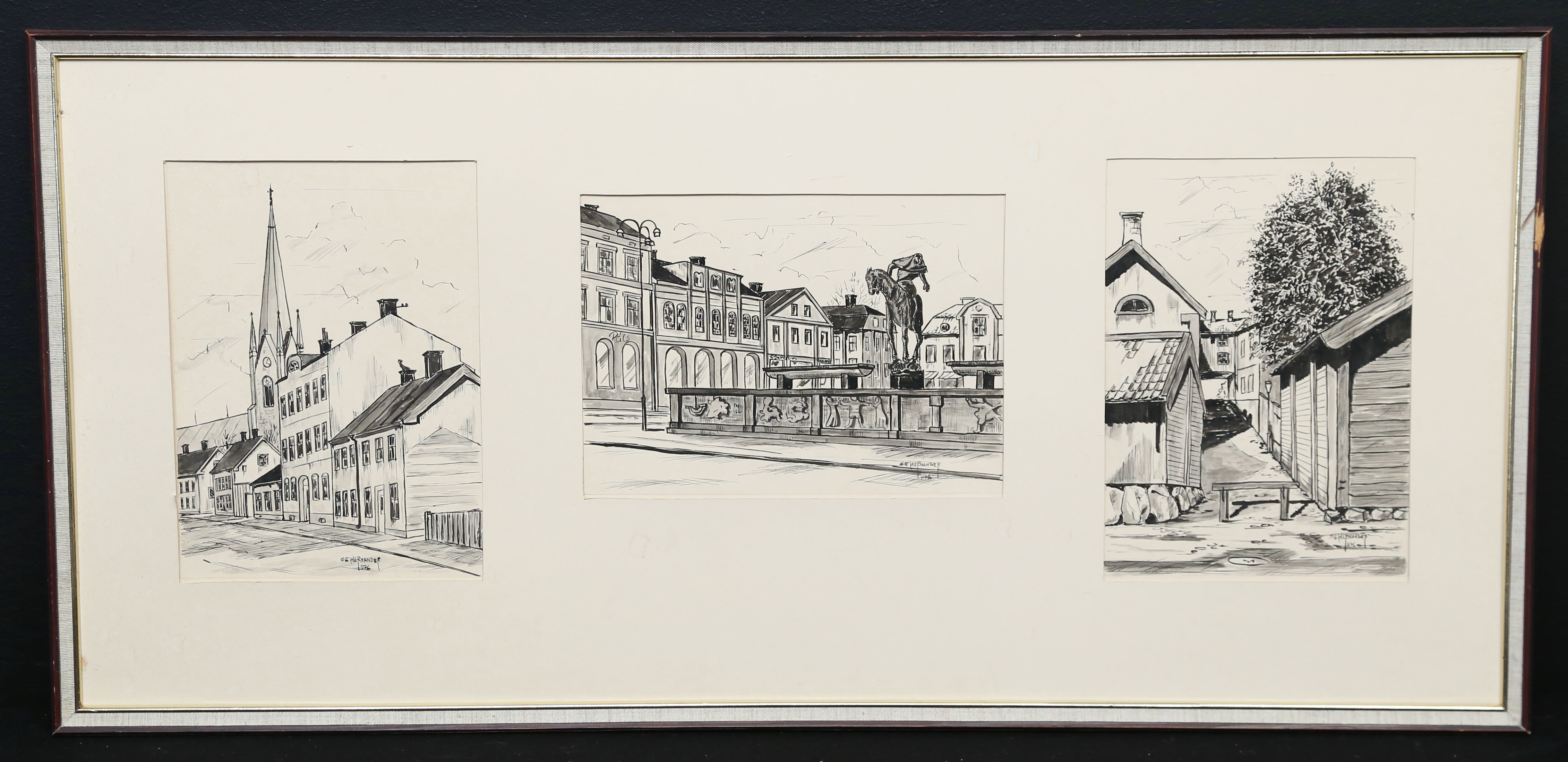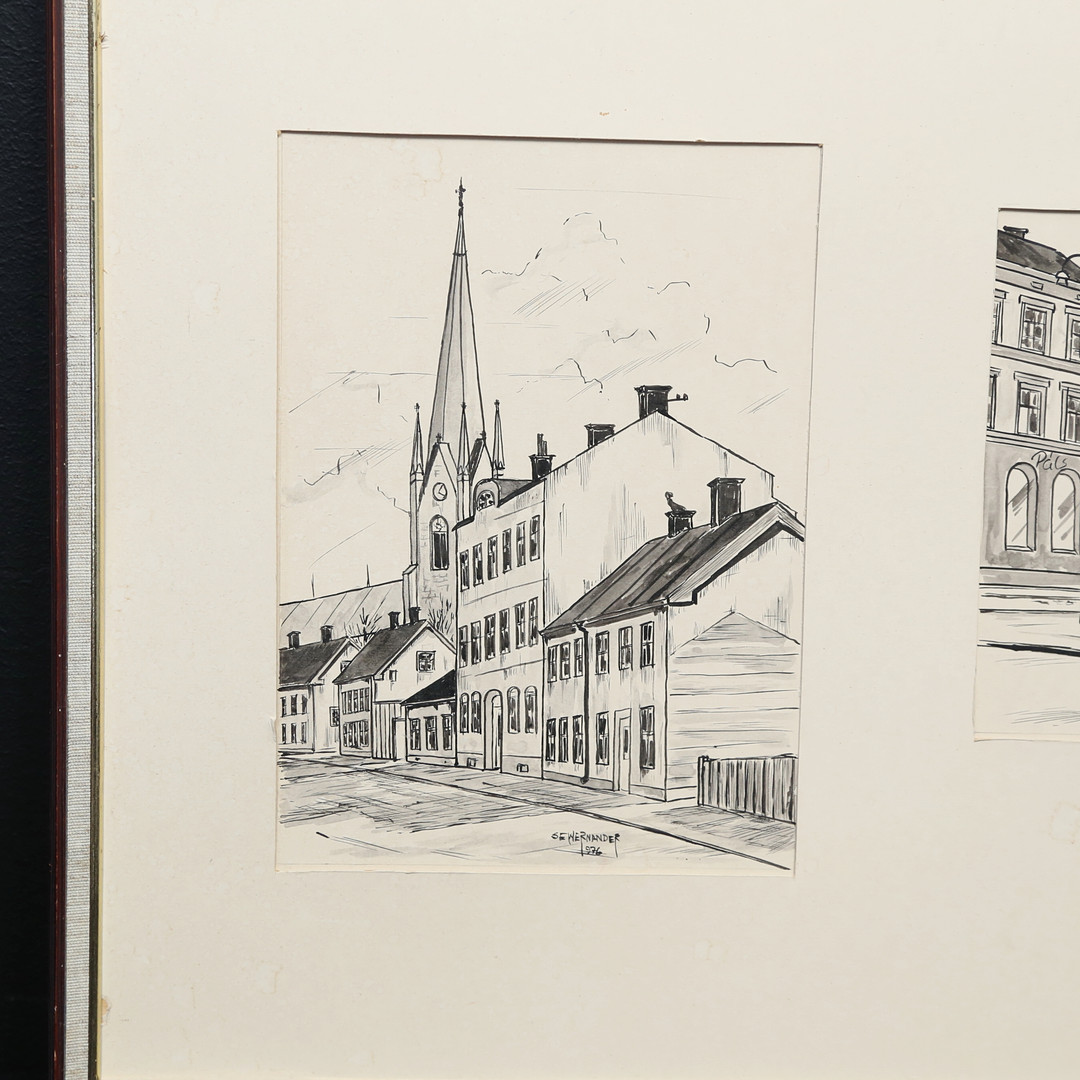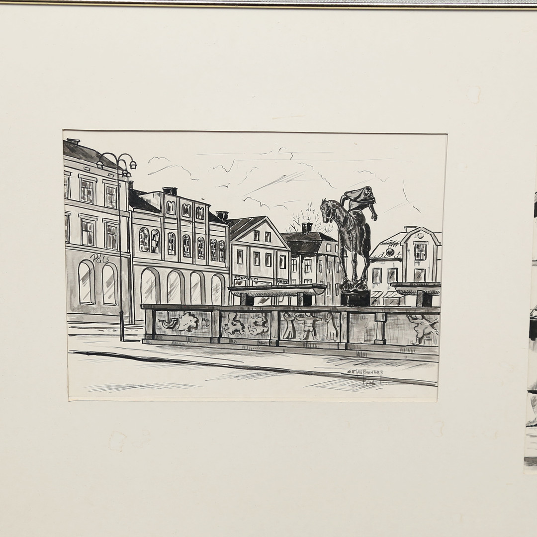 4469565. OIDENTIFIERAD KONSTNÄR. blæktegninger, motiver fra Linköping.