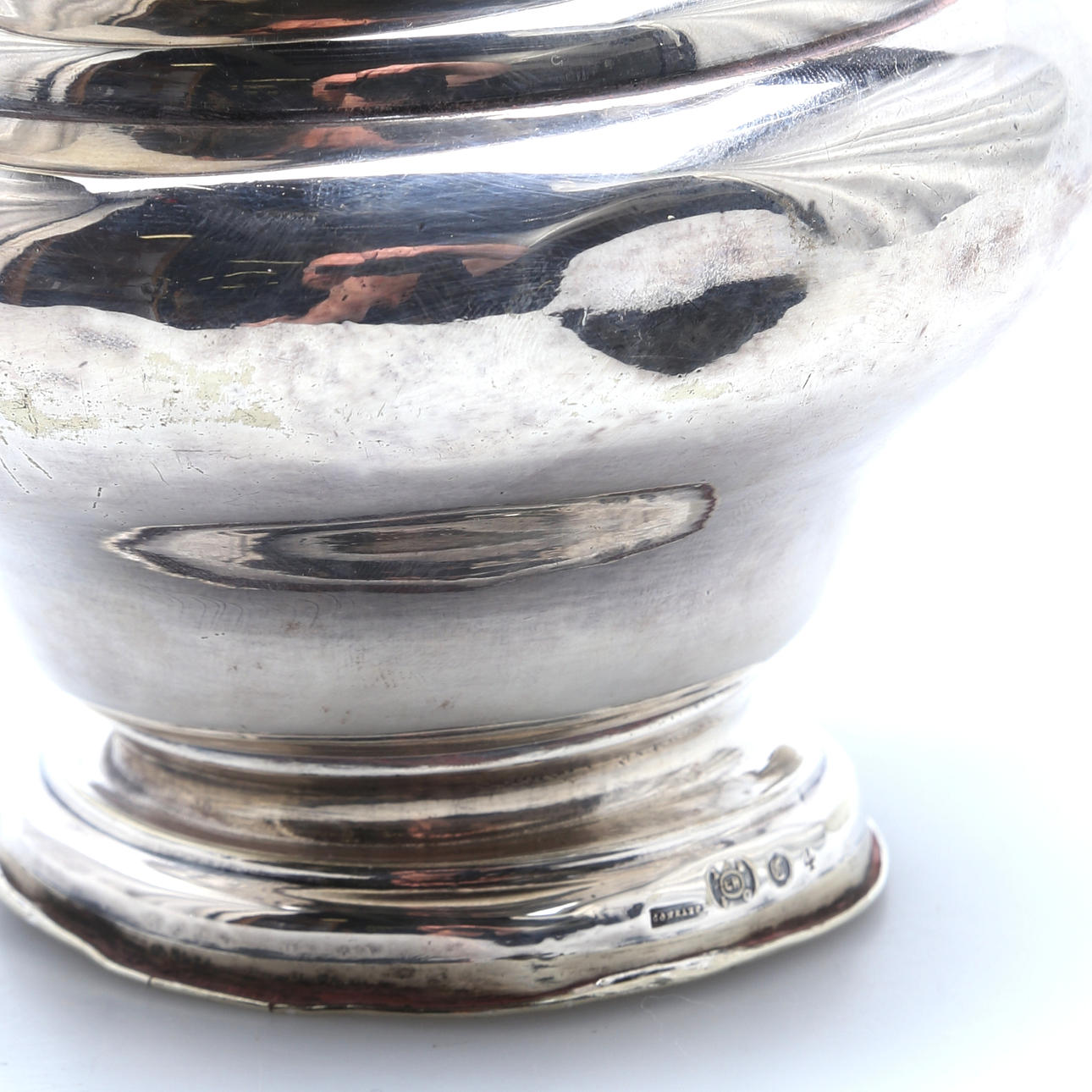 Brugsslitage og buler, håndtaget på den mindre kande med en revne.