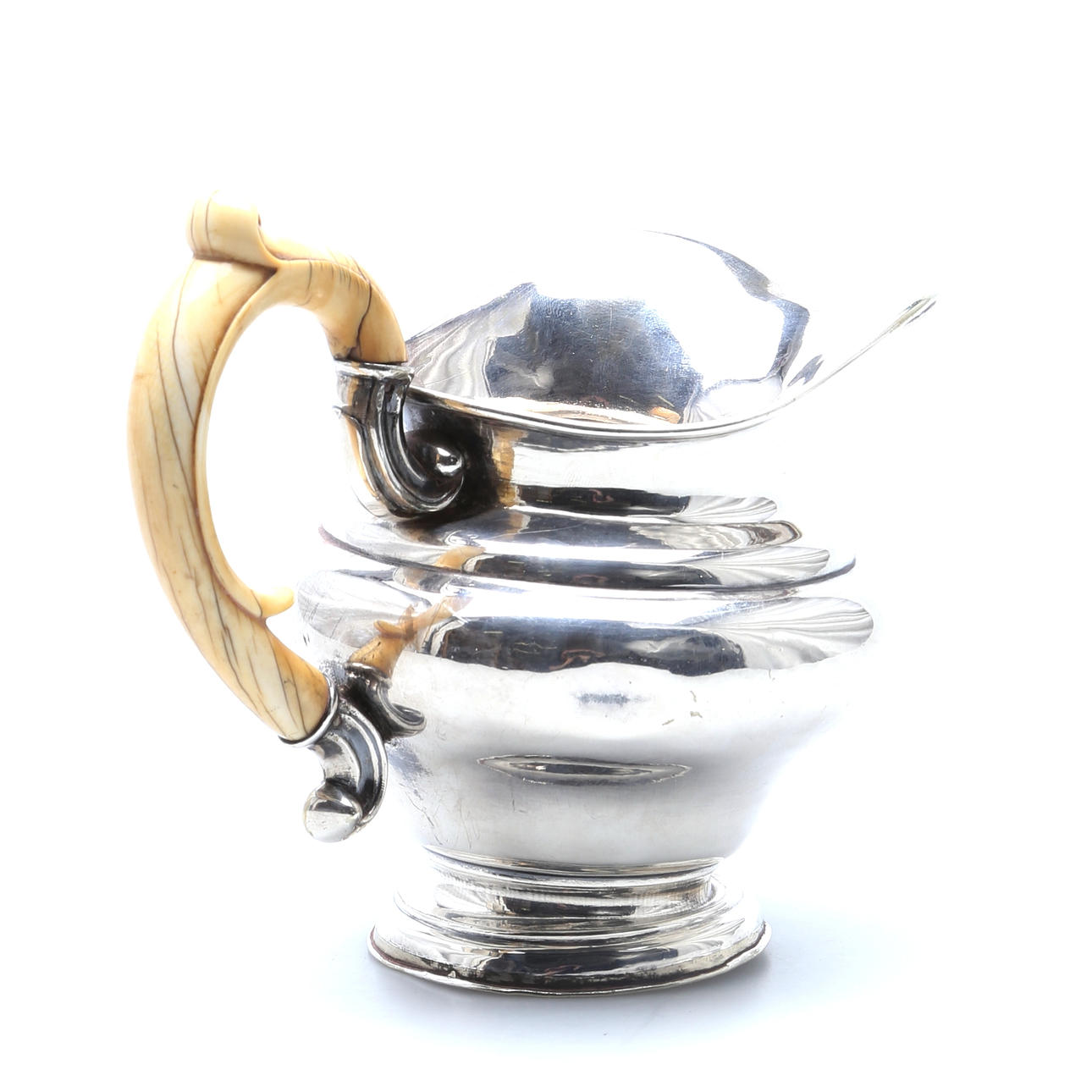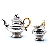Tekande og kande i nysølv med hank af elfenben, mærket med stempler fra Wien og dateret 1850 Tekandehøjde 20 cm Kandehøjde 15 cm.