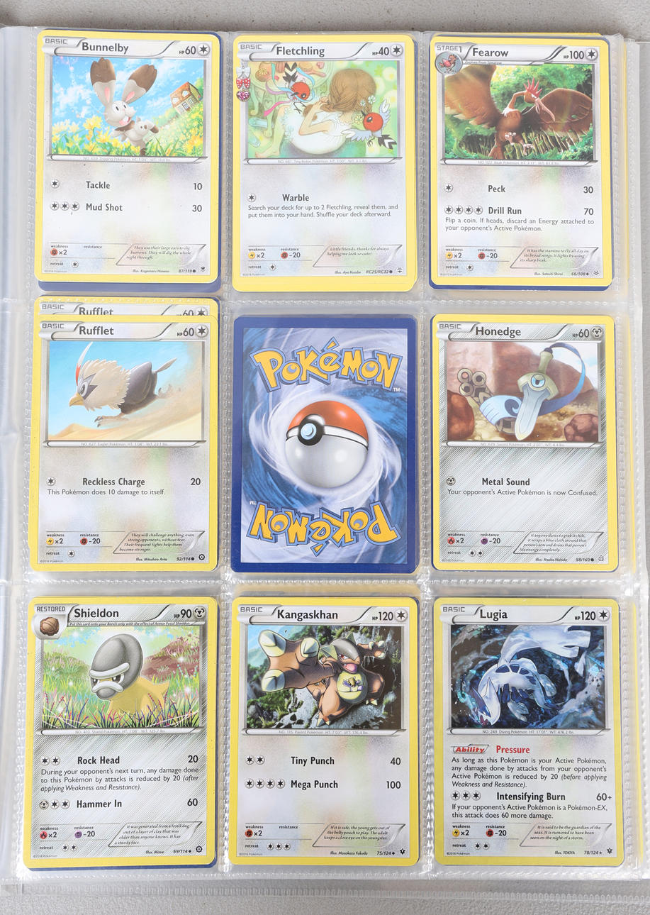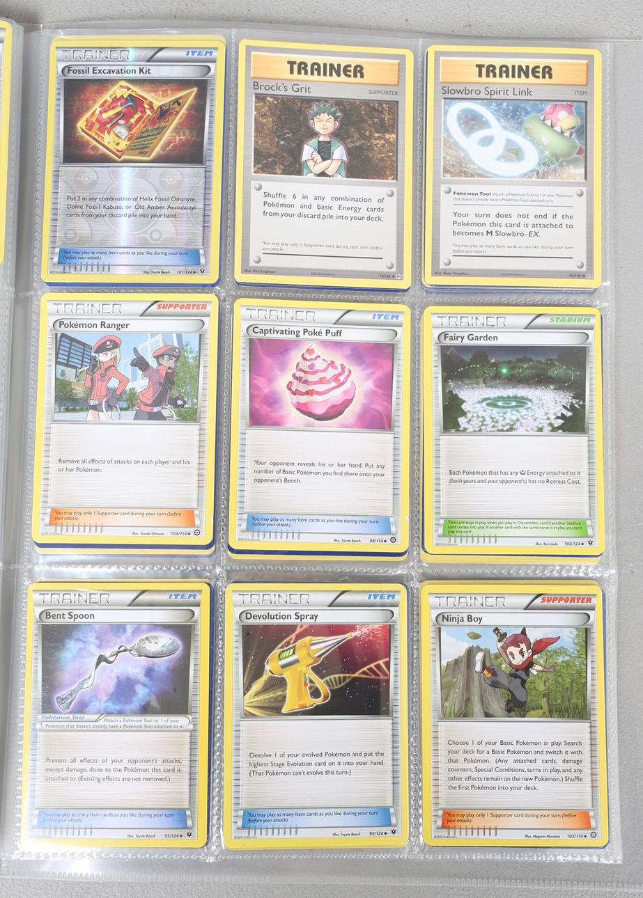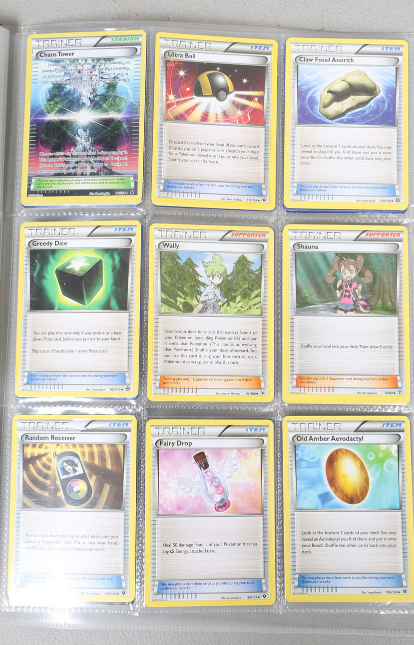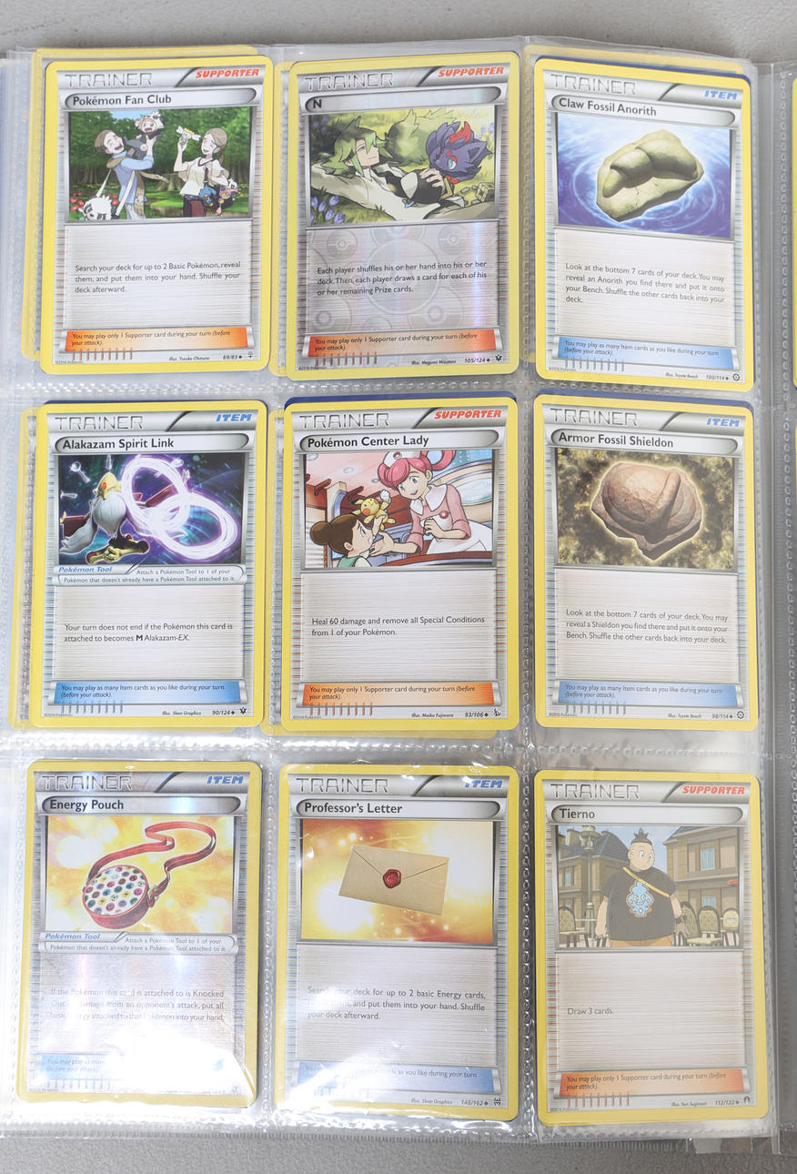Inkluderer Blastoise EX XY122 Black Star Promo Jumbo, Charizard EX 11/106, Zygarde EX XY151 Black Star Promo, Volcanion EX 115/114, Steelix EX 67/114, Bronzong Break 62/124, Delphox Break 14/124, Professor Sycamore 114/114, Palkia 26/106 Omvendt Holo, Yveltal 65/114, Pikachu 58/102 Basissæt, Ditto Sort XY40 Star Promo, Dragonite 51/108 Reverse Holo, Lugia 78/104 Holo, Venusaur 20/132, Swirlix RC19/RC32, Mew 29/124 Holo, N 105/124 Reverse Holo, sammen med andre Holo, Reverse Holo og standard kort, 180+ Kort, bindemidlet 30cm højt.