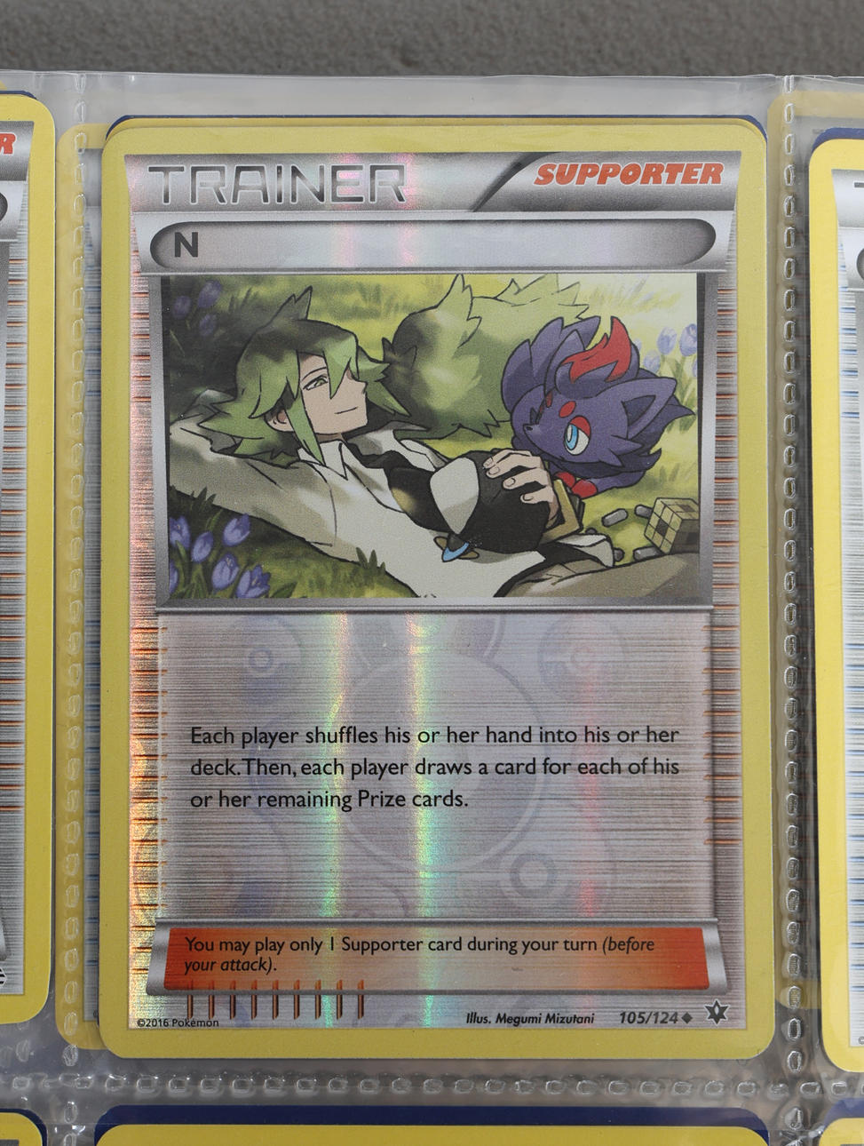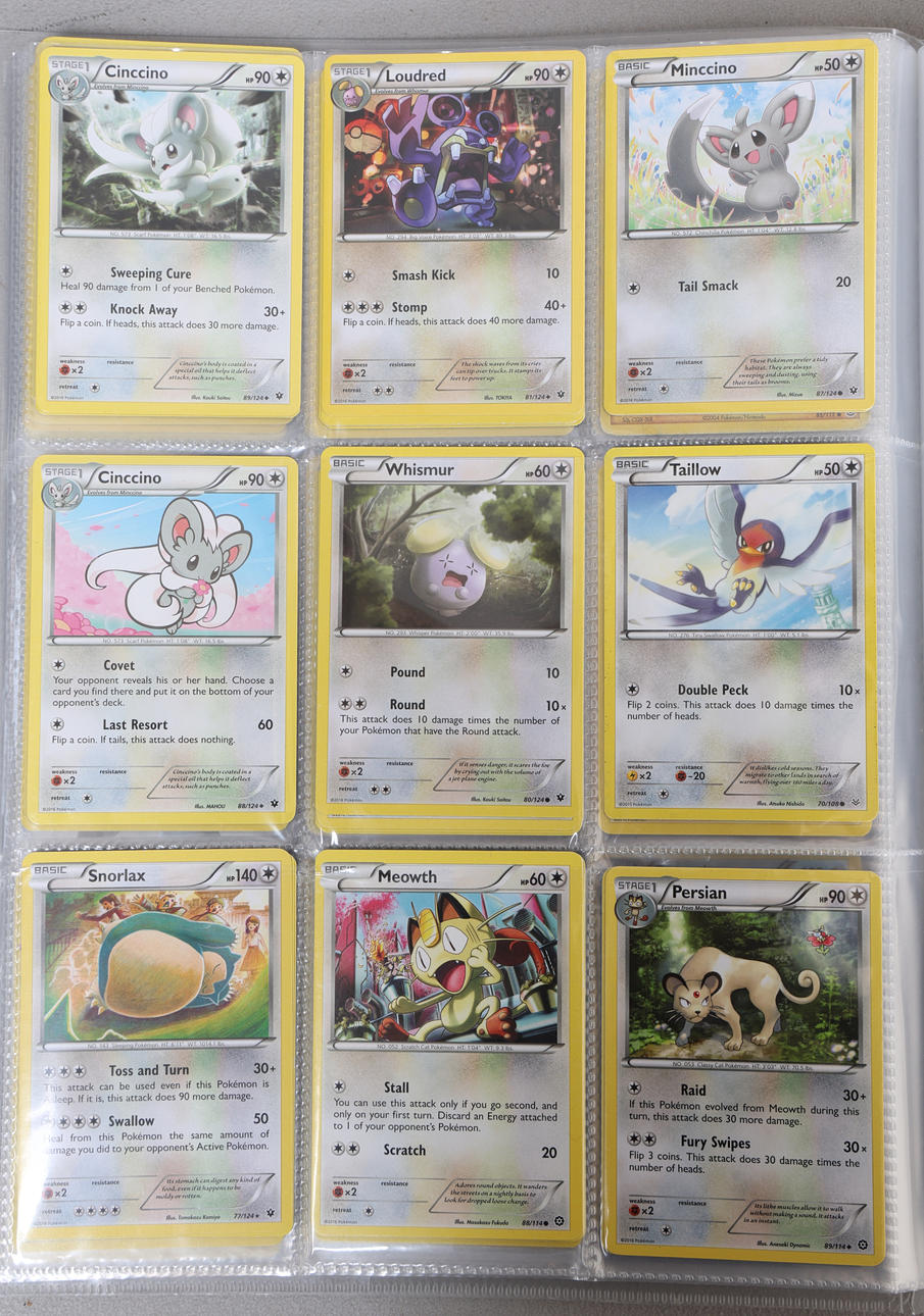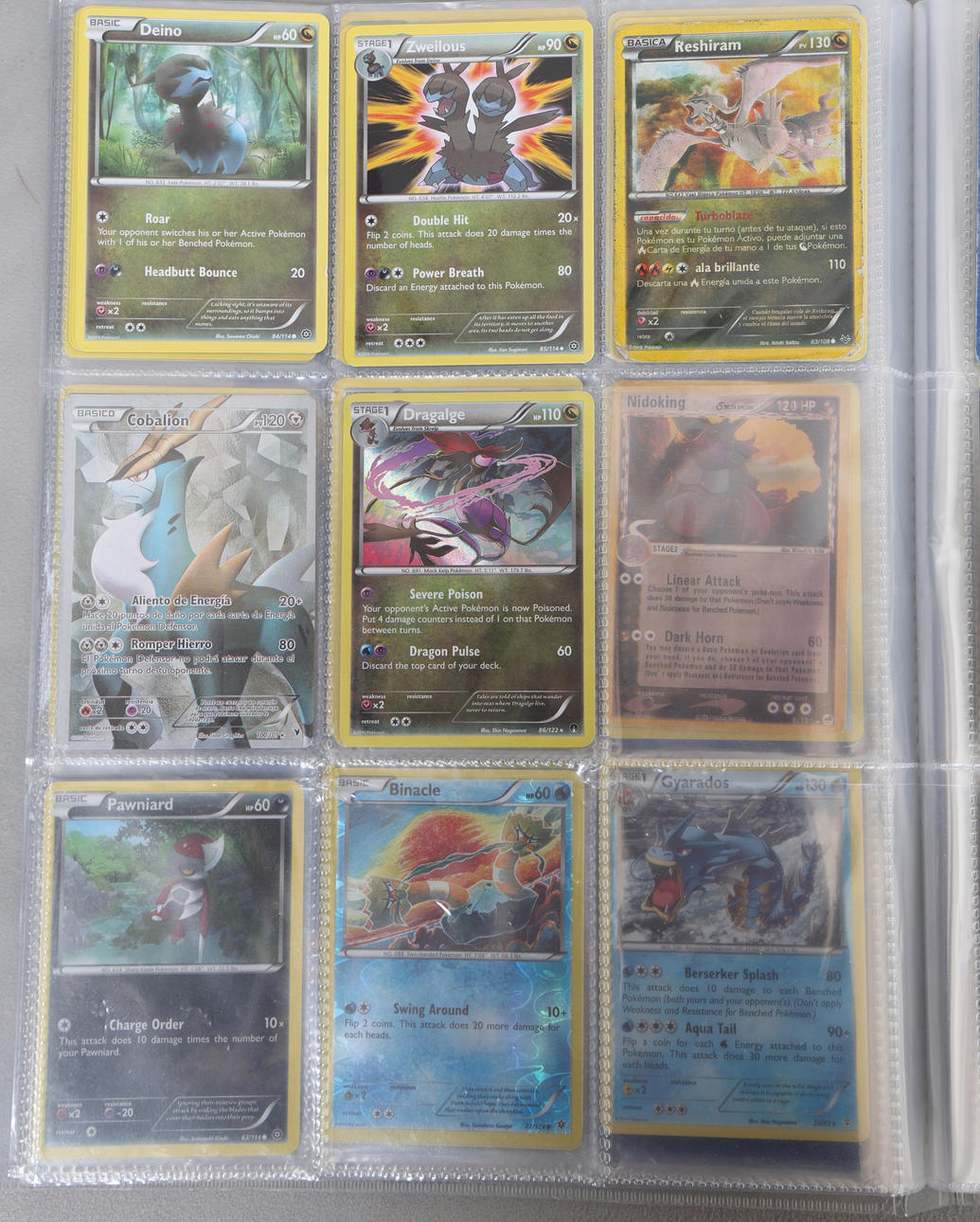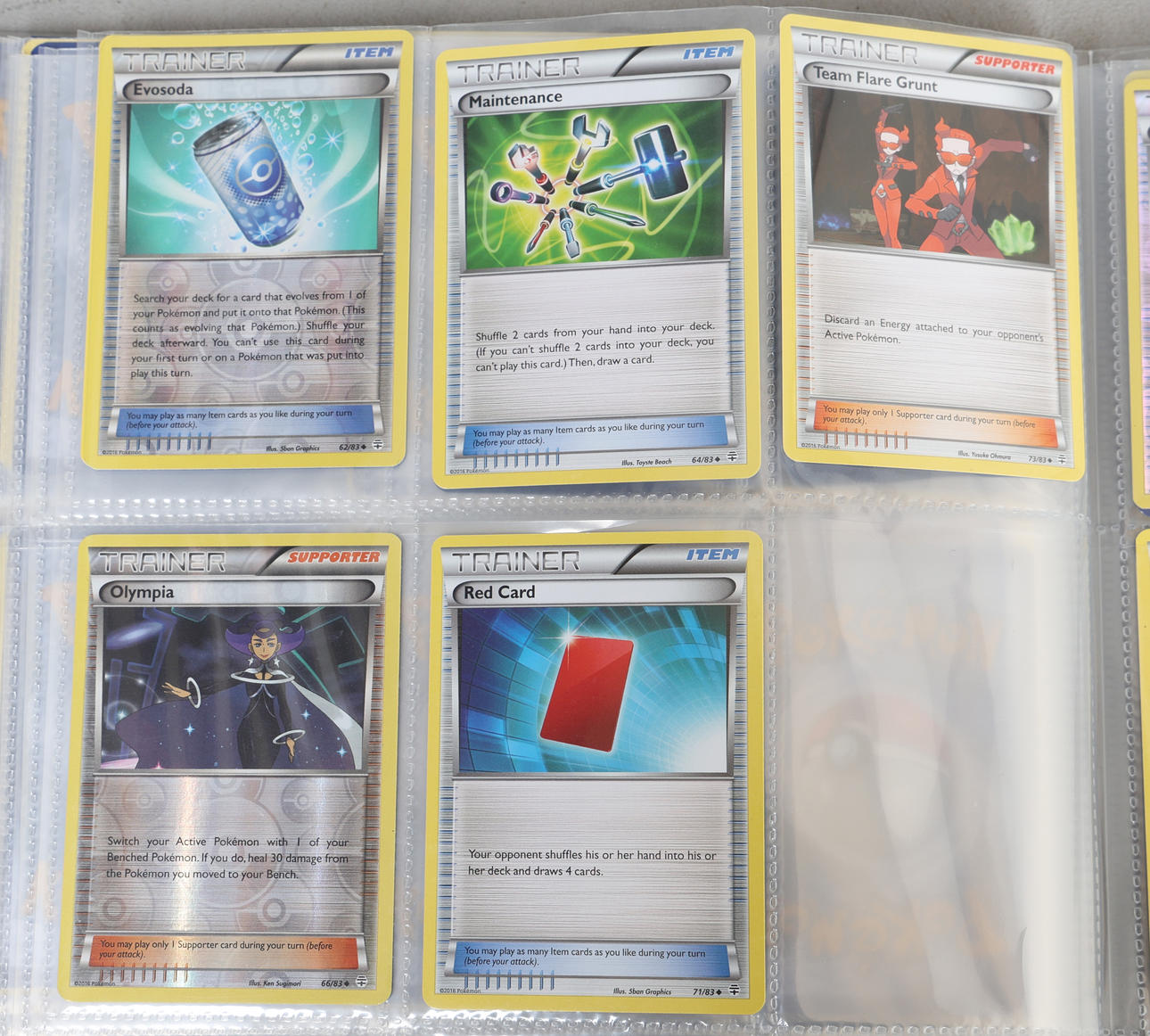 Inkluderer Blastoise EX XY122 Black Star Promo Jumbo, Charizard EX 11/106, Zygarde EX XY151 Black Star Promo, Volcanion EX 115/114, Steelix EX 67/114, Bronzong Break 62/124, Delphox Break 14/124, Professor Sycamore 114/114, Palkia 26/106 Omvendt Holo, Yveltal 65/114, Pikachu 58/102 Basissæt, Ditto Sort XY40 Star Promo, Dragonite 51/108 Reverse Holo, Lugia 78/104 Holo, Venusaur 20/132, Swirlix RC19/RC32, Mew 29/124 Holo, N 105/124 Reverse Holo, sammen med andre Holo, Reverse Holo og standard kort, 180+ Kort, bindemidlet 30cm højt.