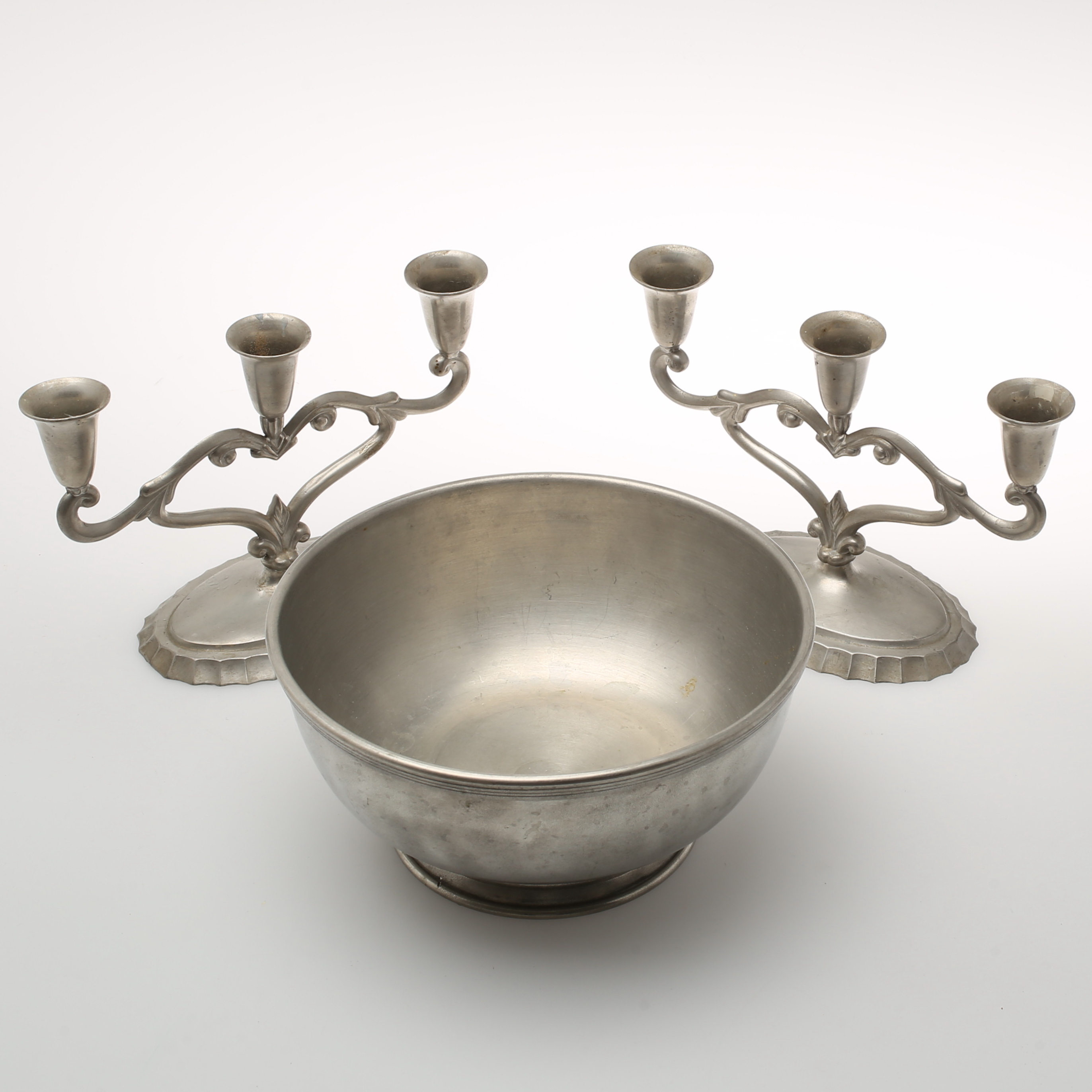447085. KANDELABRER, et par, SKÅLE. Tin.