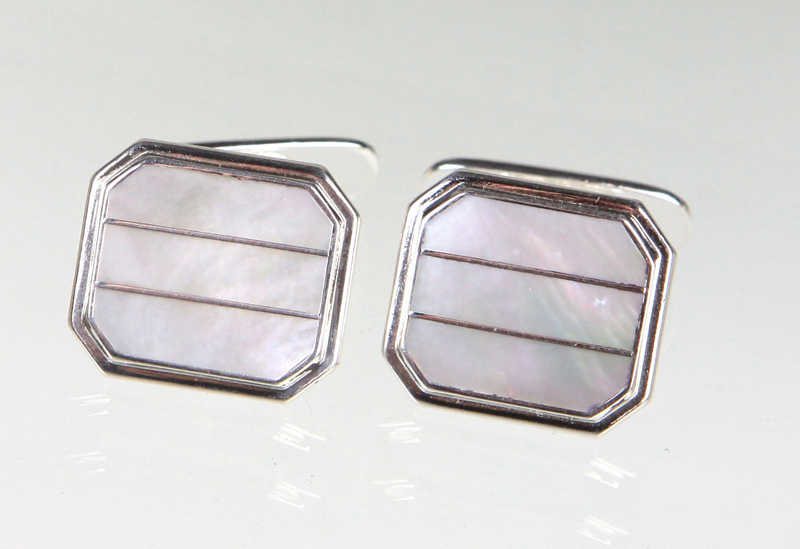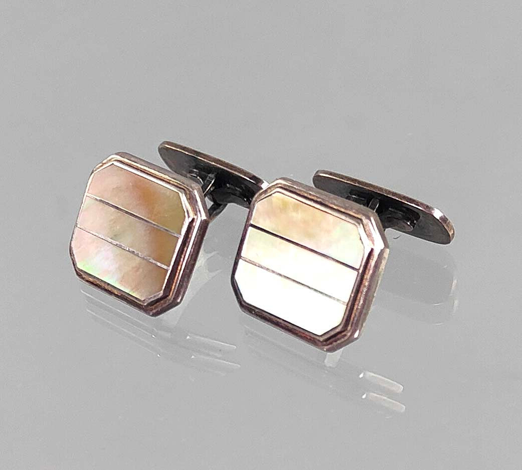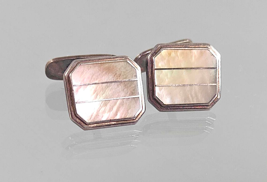 4472543. MANCHETKNAPPER MED PERLEMOR SØLV 835.