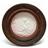 Antik cirkulært indrammet reliefpanel, der viser barn med hane - ramme 23cm diameter.