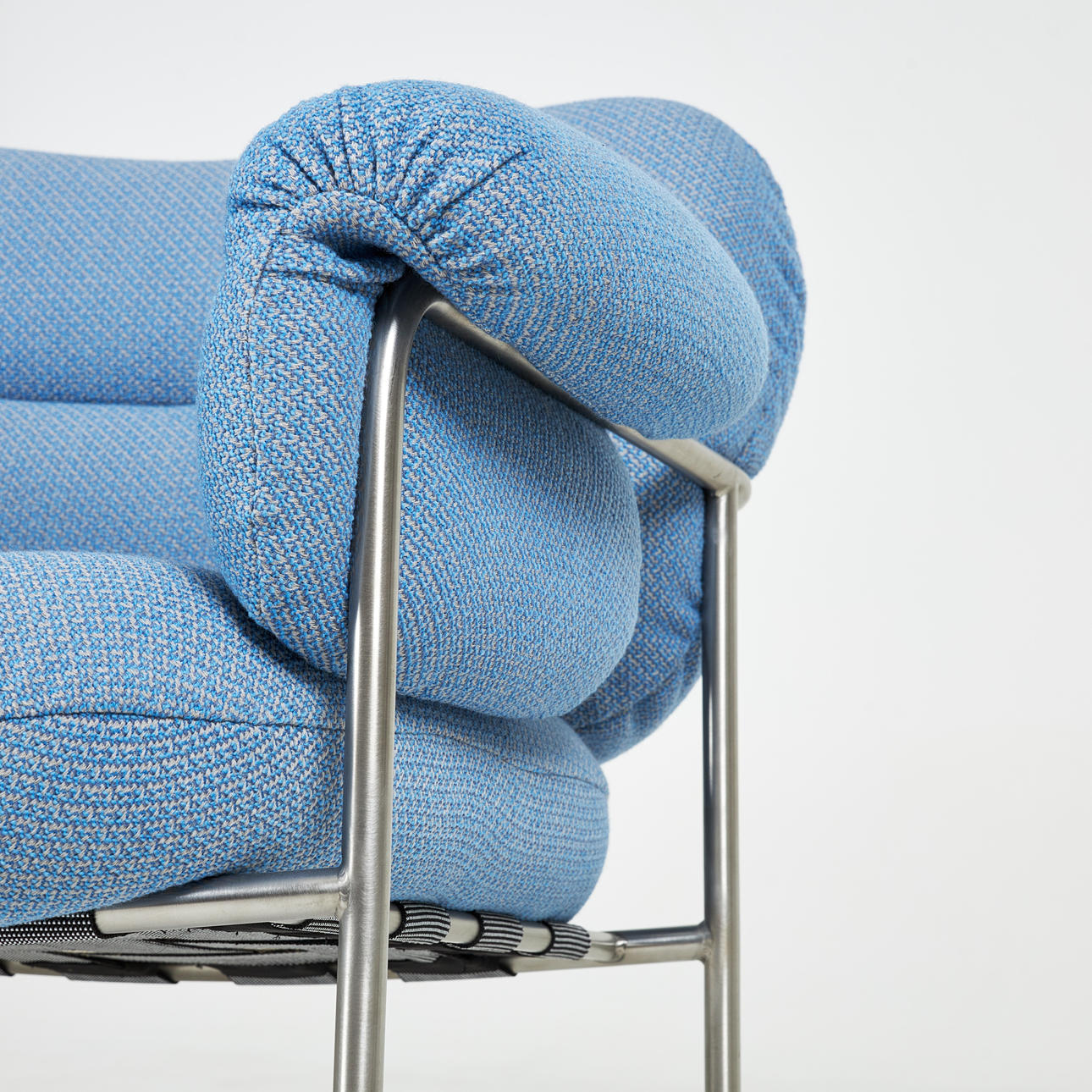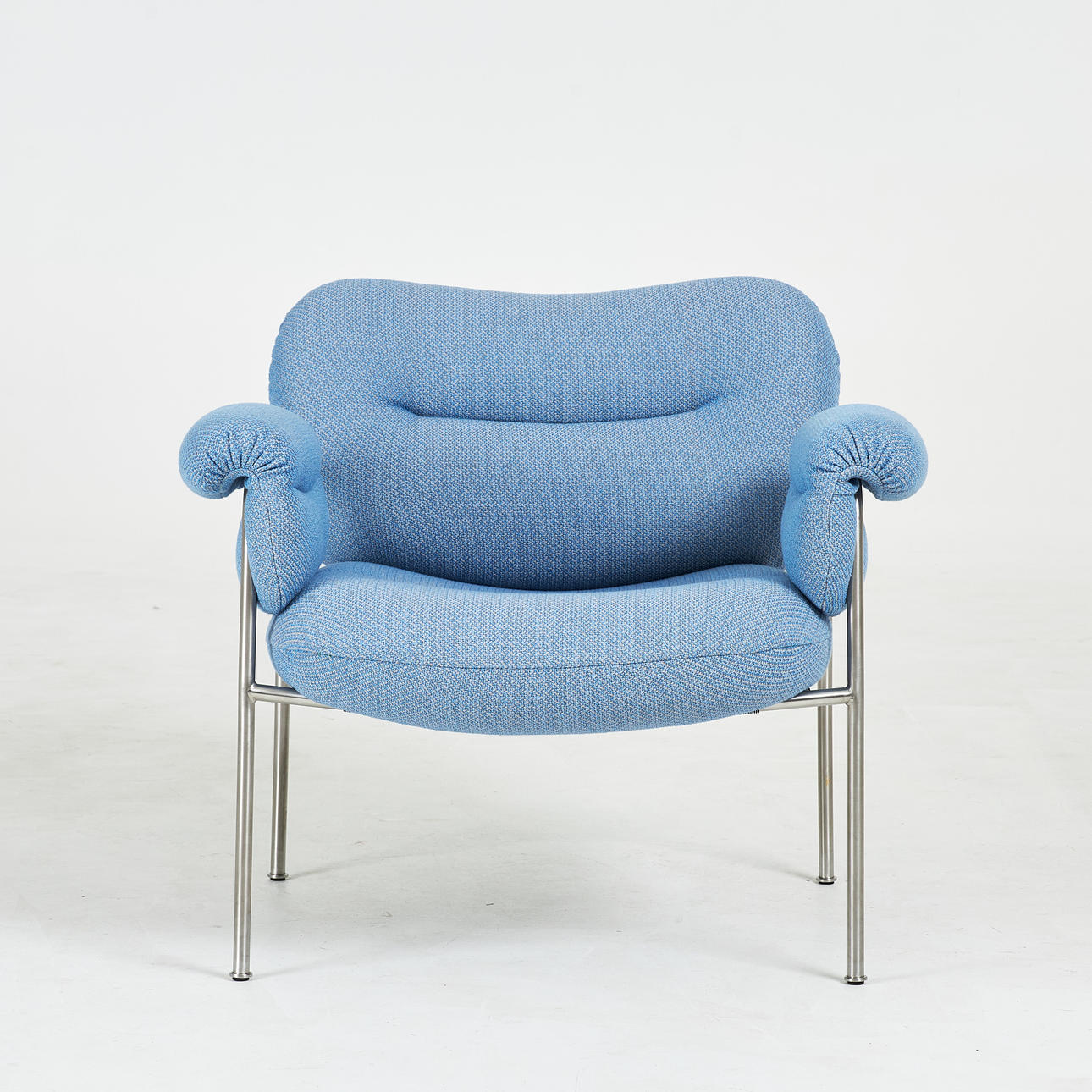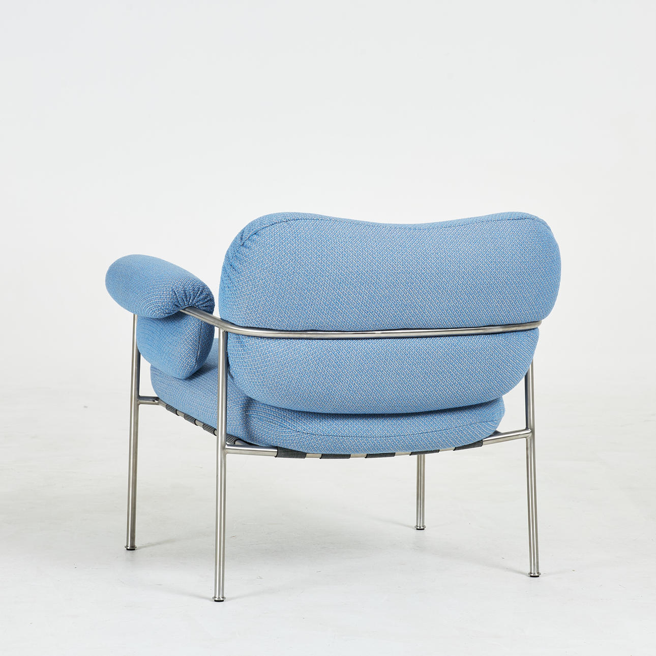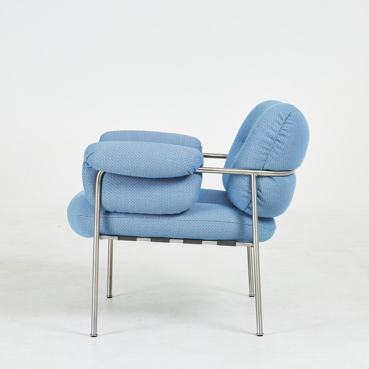 4473509. ANDREAS ENGESVIK. Lænestol, „Bollo“, stel i børstet rustfrit stål, polstring Cleo Sky, Fogia.