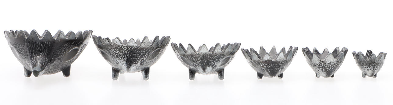 4477121. ASKEBÆGER, 6 stk, Pindsvin, metal, stabelbart, efter Walter Bosse.