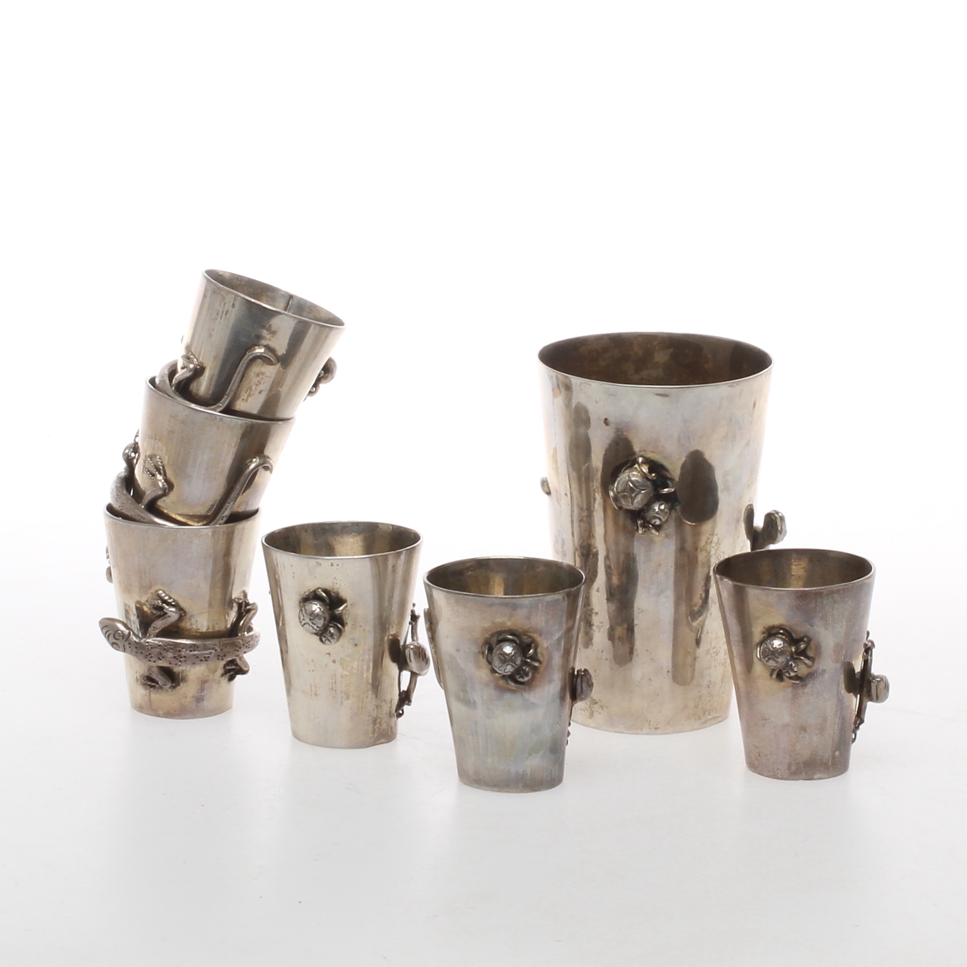 447765. SAKE SÆT, 7 dele, sølv, orientalsk, 20. århundrede.