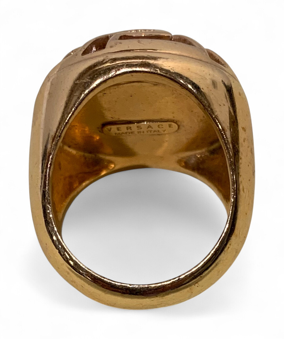 4477906. Versace ring i guldmetal og imiteret rav.