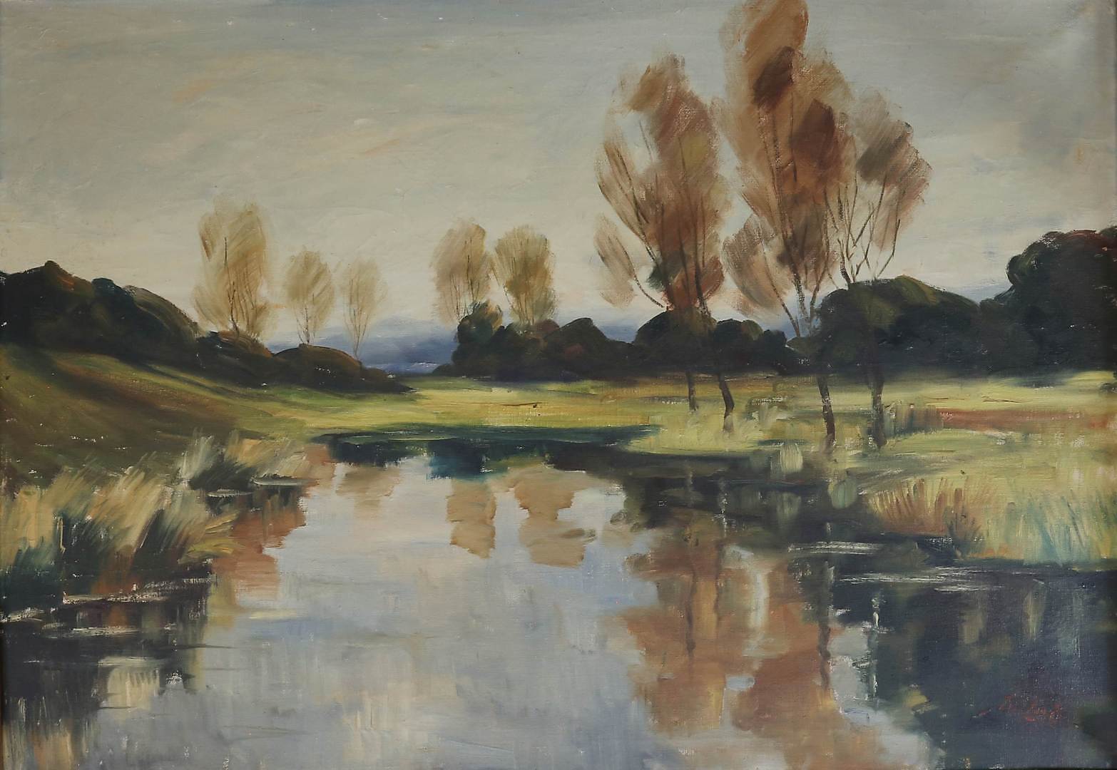 447905. FLODLANDSKAB, OLIE PÅ LÆRD.