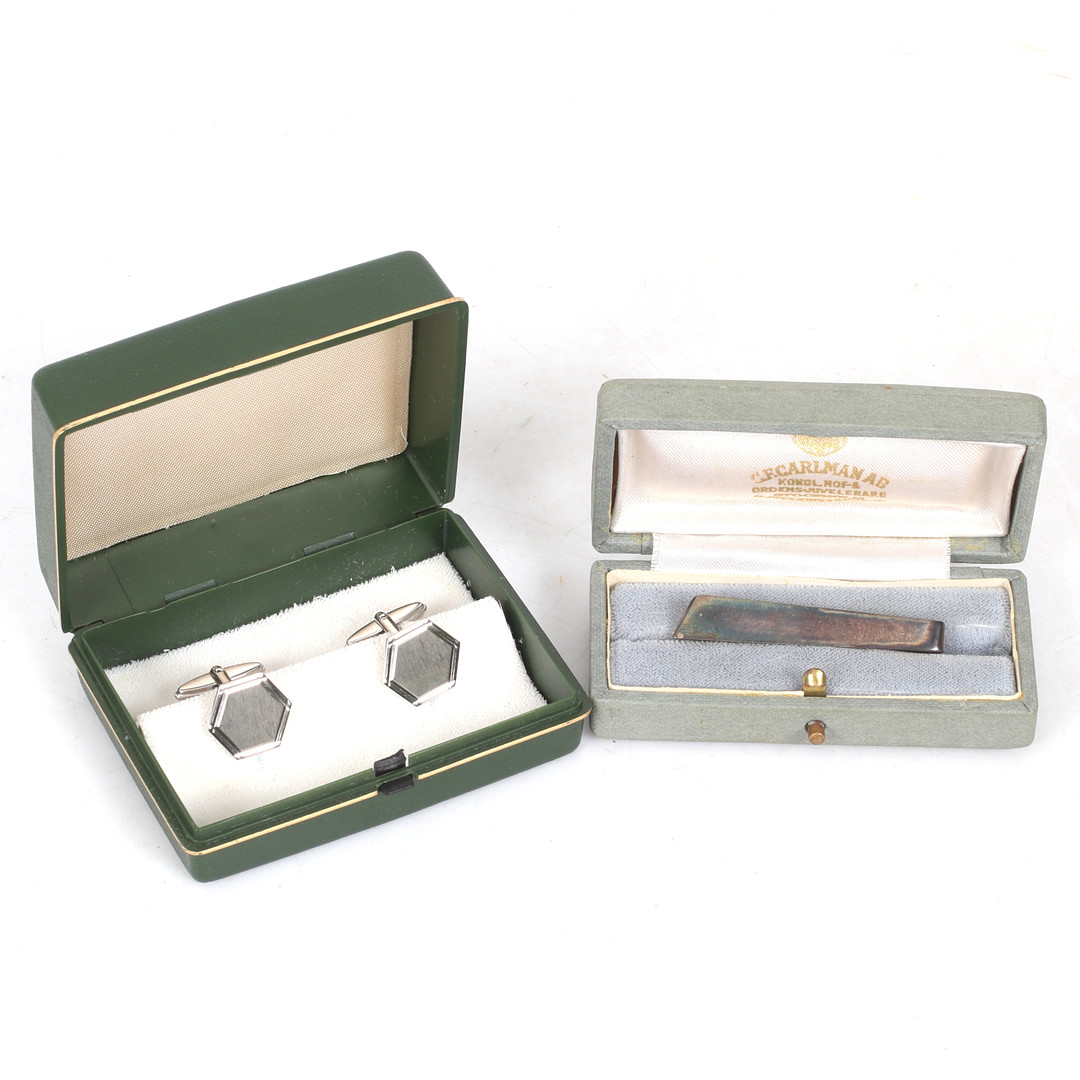 4479161. MANCHETKNAPPER, 1 par, BINDESTÅLE, sølv, 20. århundrede.
