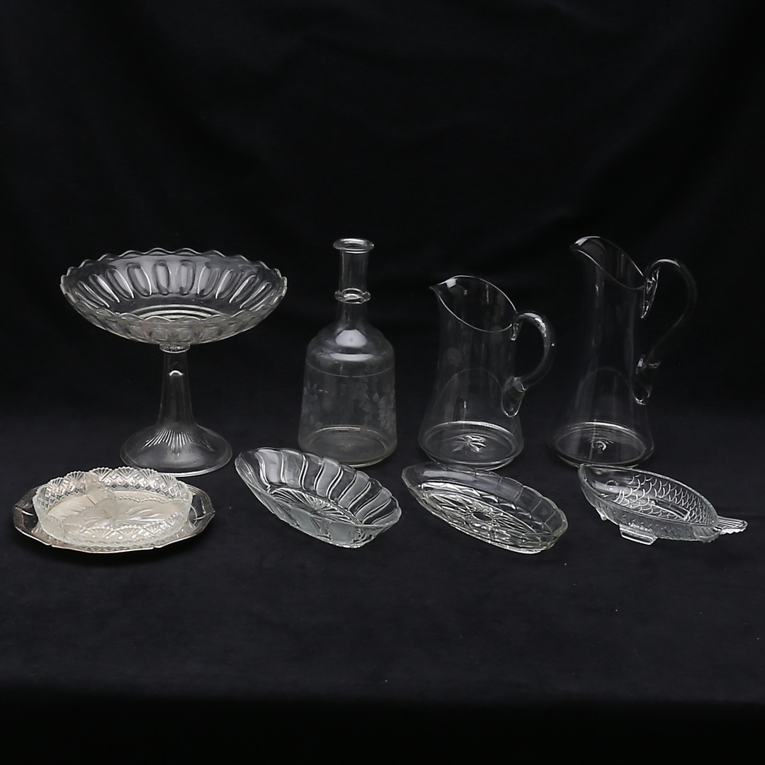 448335. GLASOBJEKTER, 7 dele, 19. / 20. århundrede.