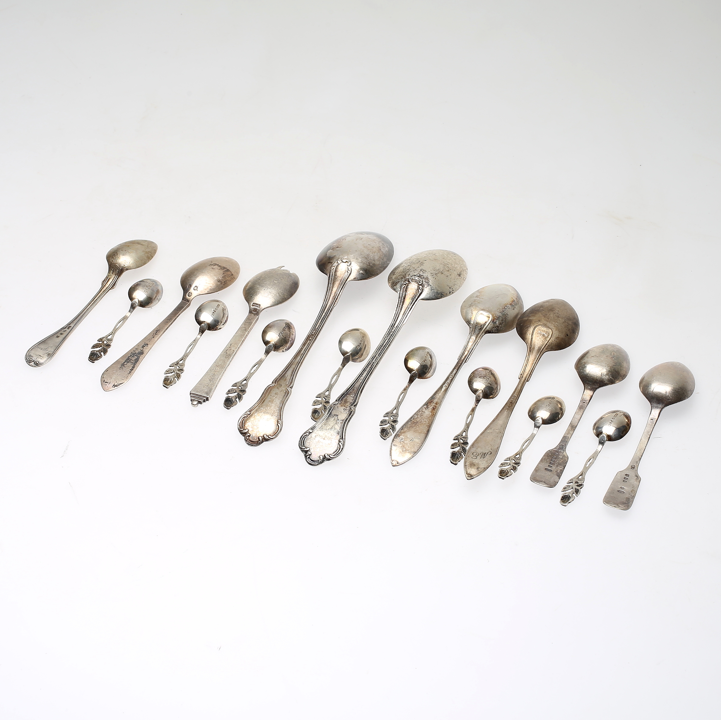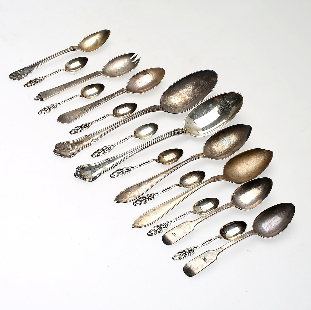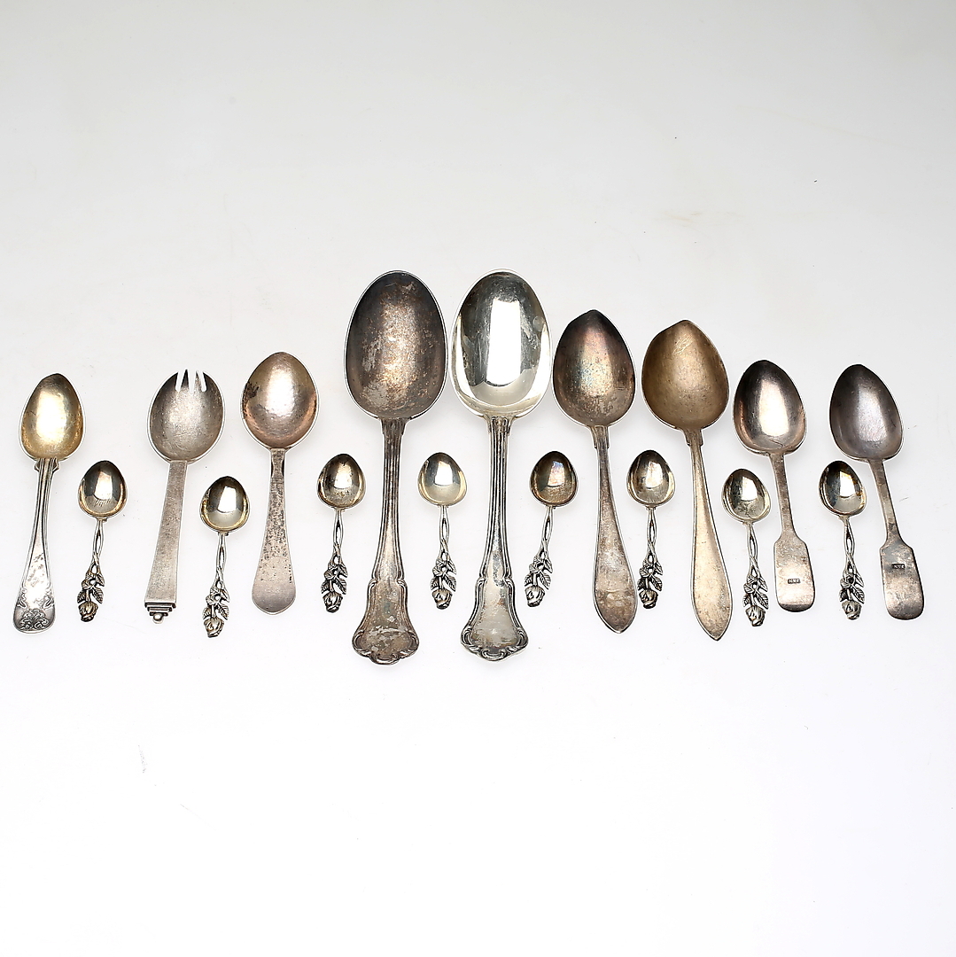 448381. SØLVGENSTANDE, 17 stk. Samlet vægt ca 382 g.