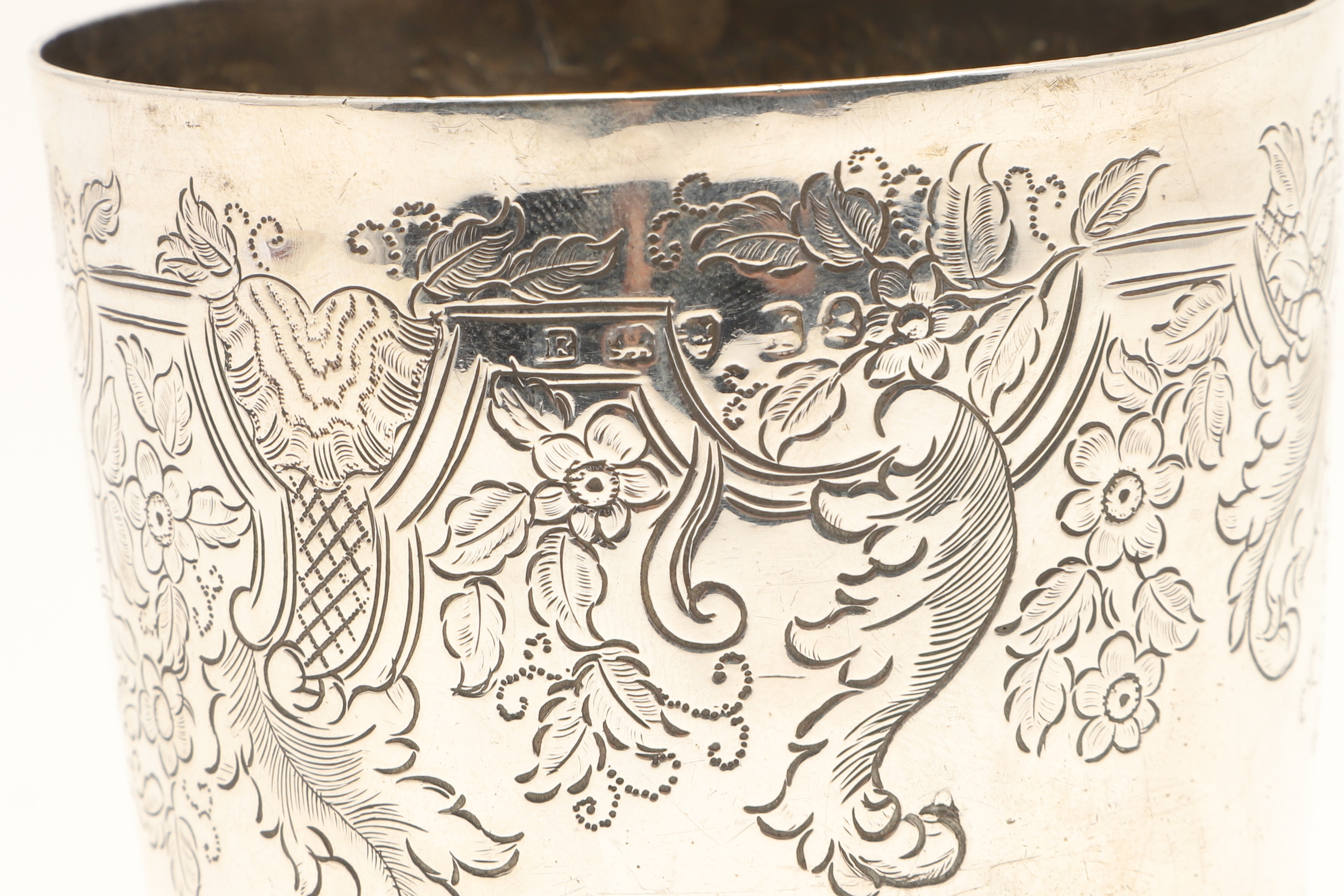 4484127. EN GEORGE IV INDGRAVERET SØLVKOP.