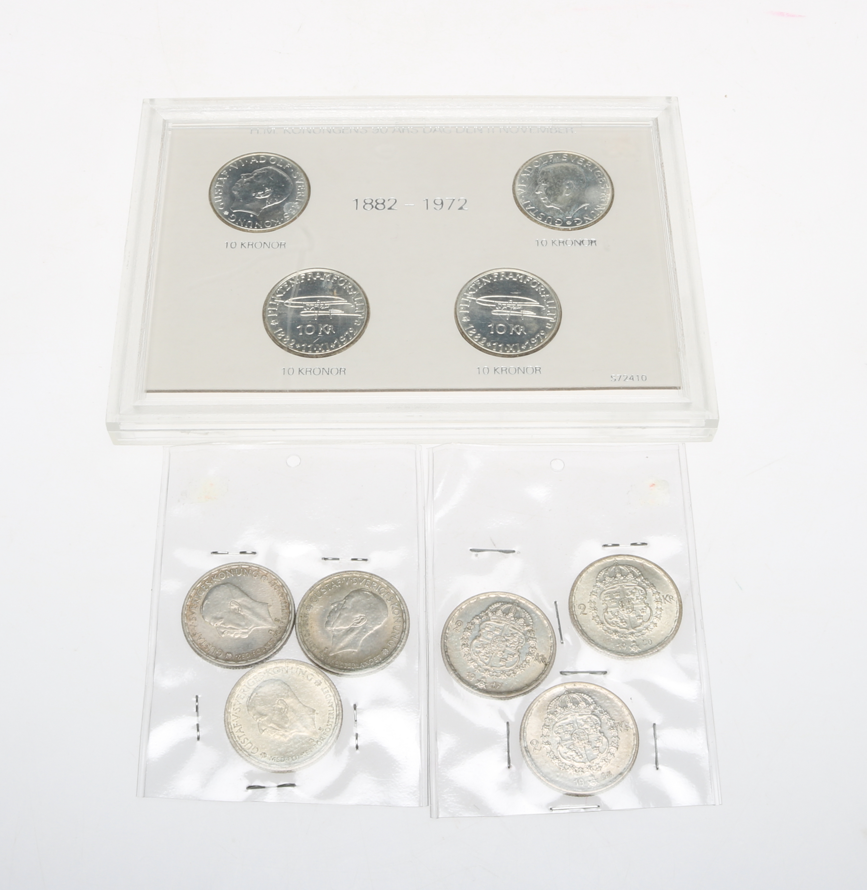 448736. SØLVMØNTER, 10 stk, 2 kroner og 10 kroner.