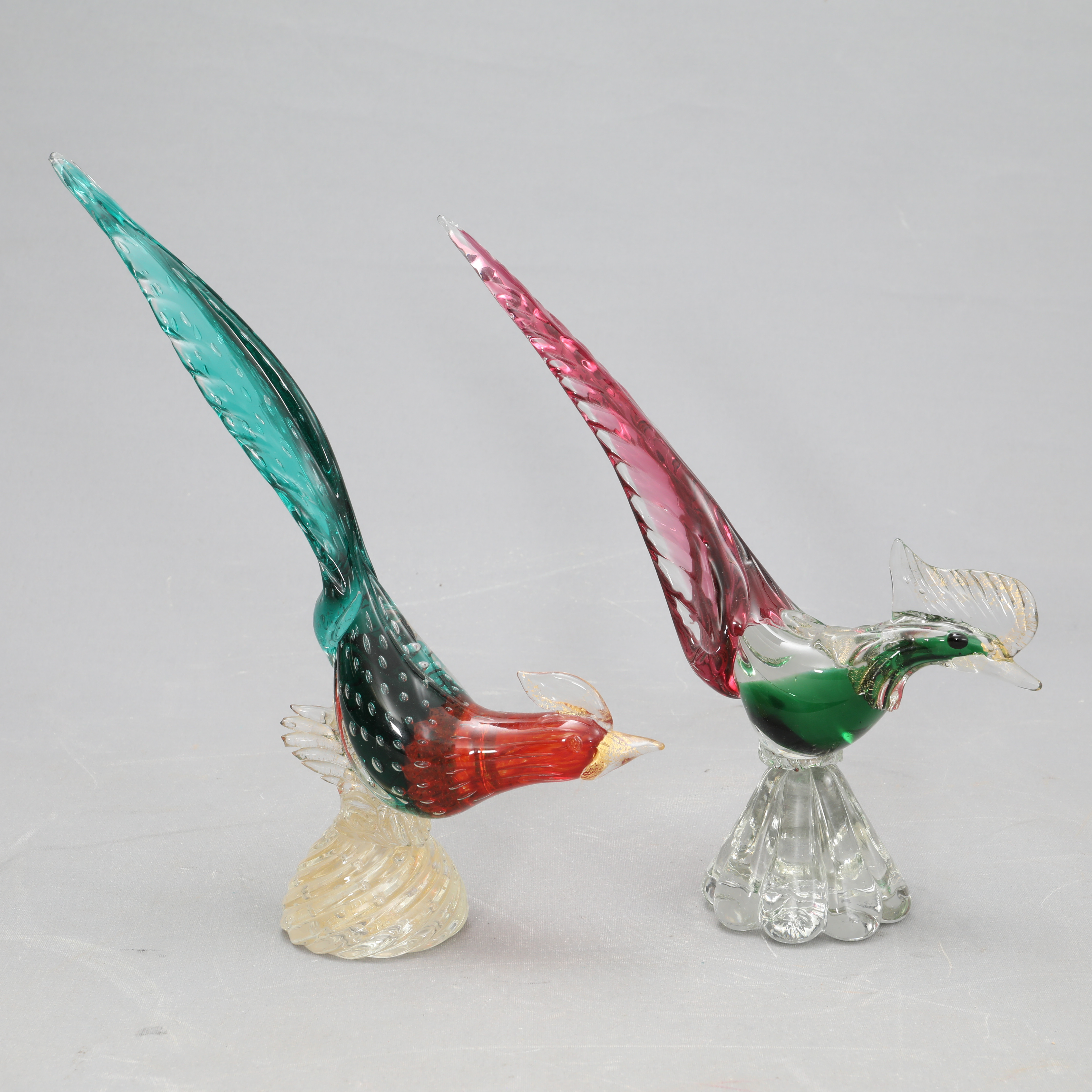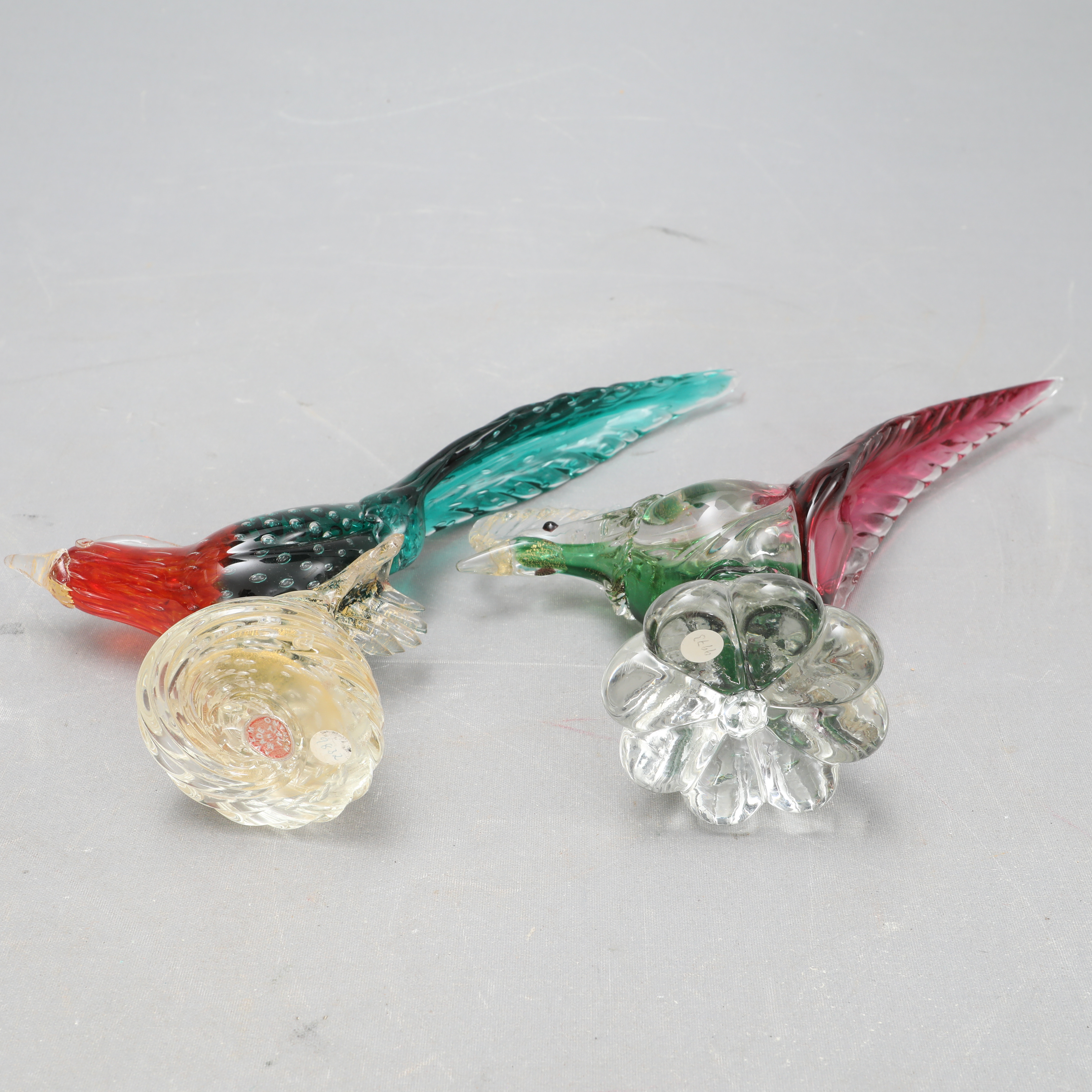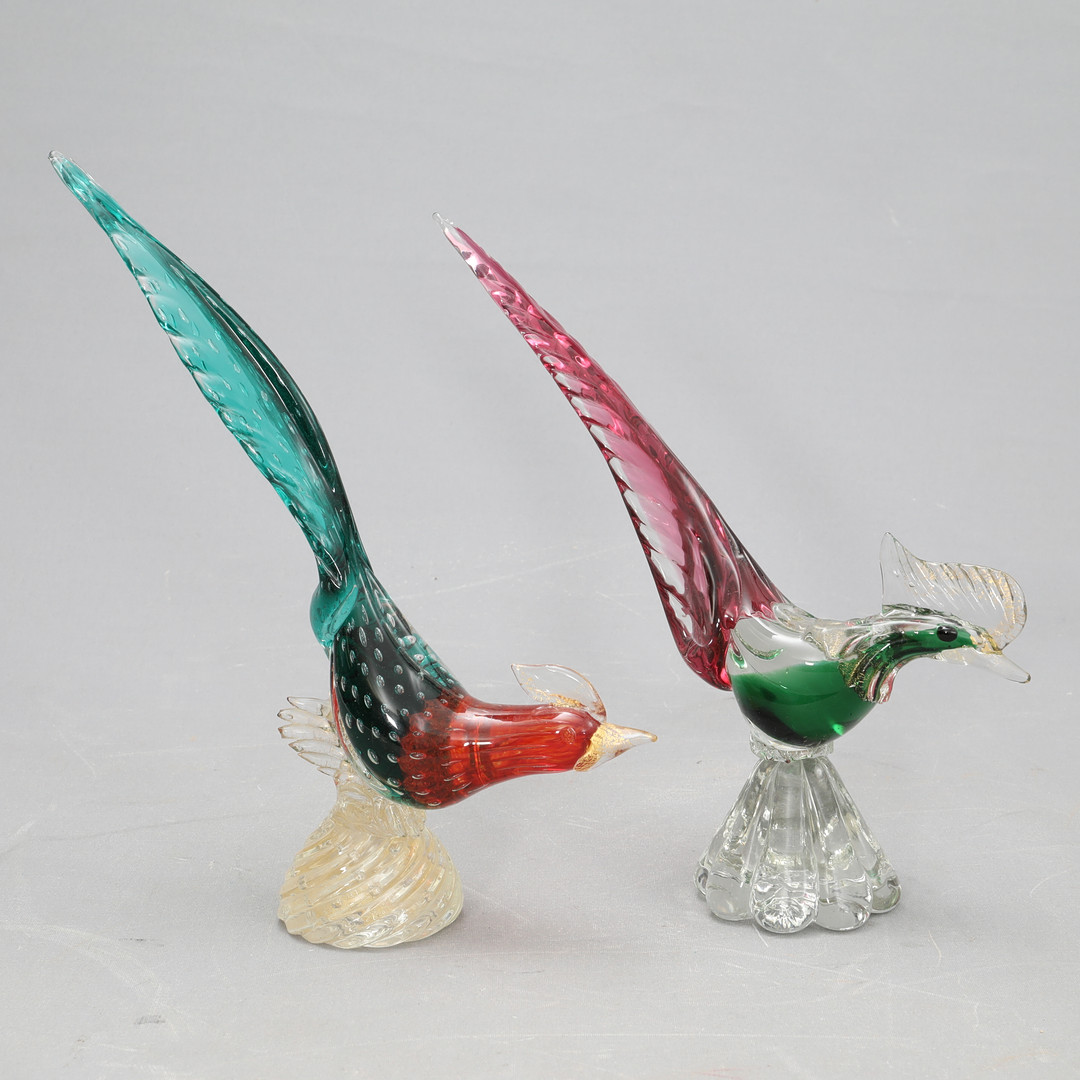 4488047. GLASFUGLE, 2 stk., Murano, Italien.