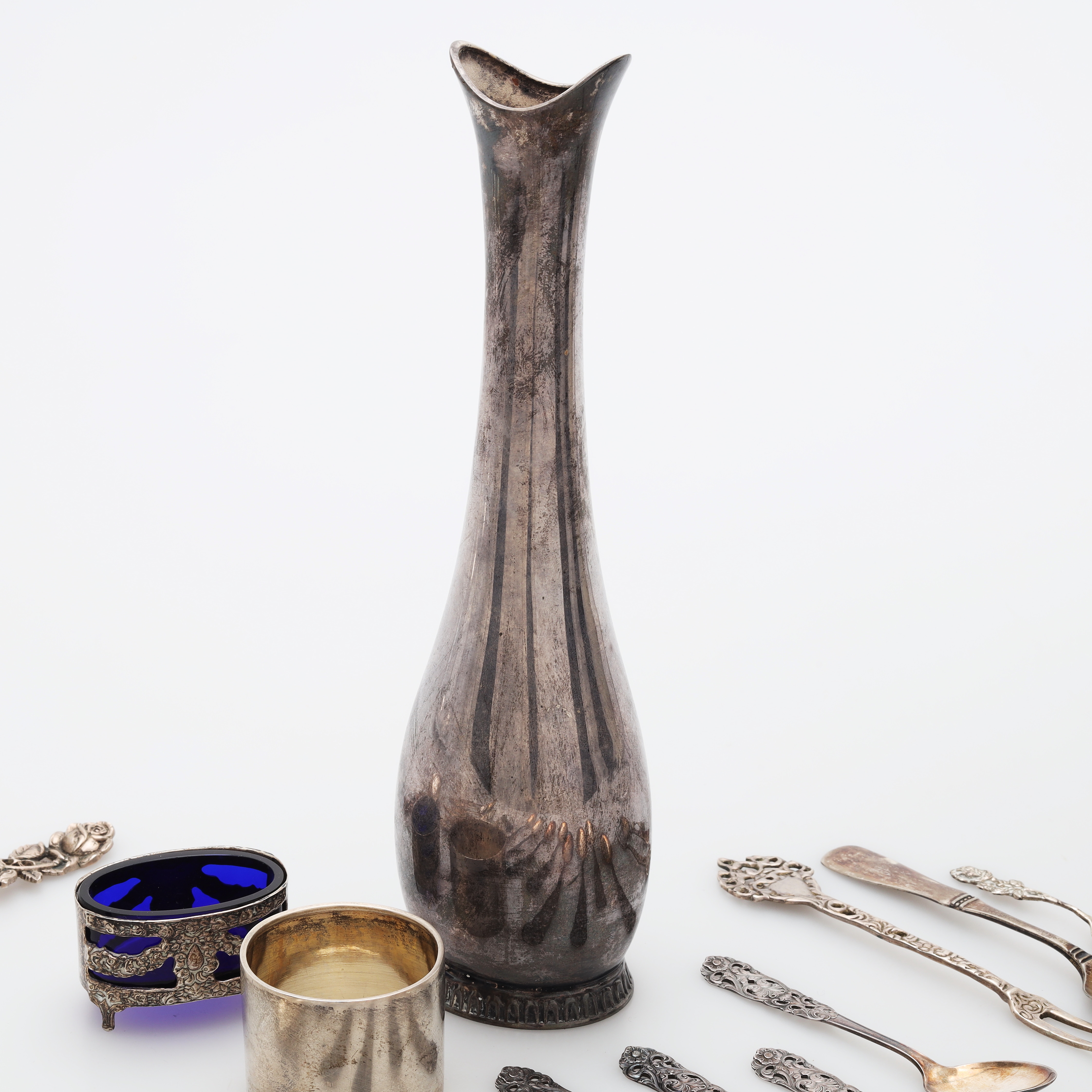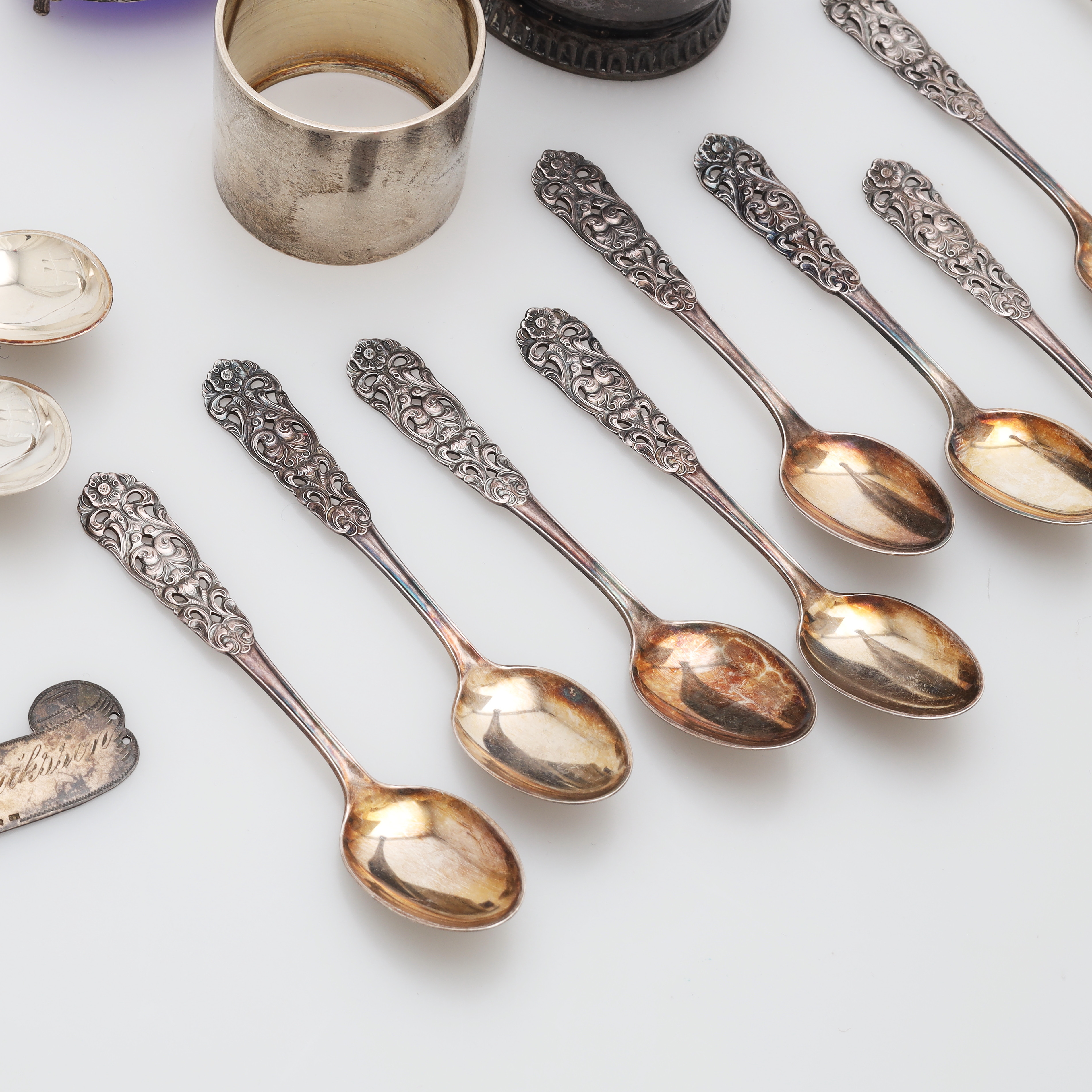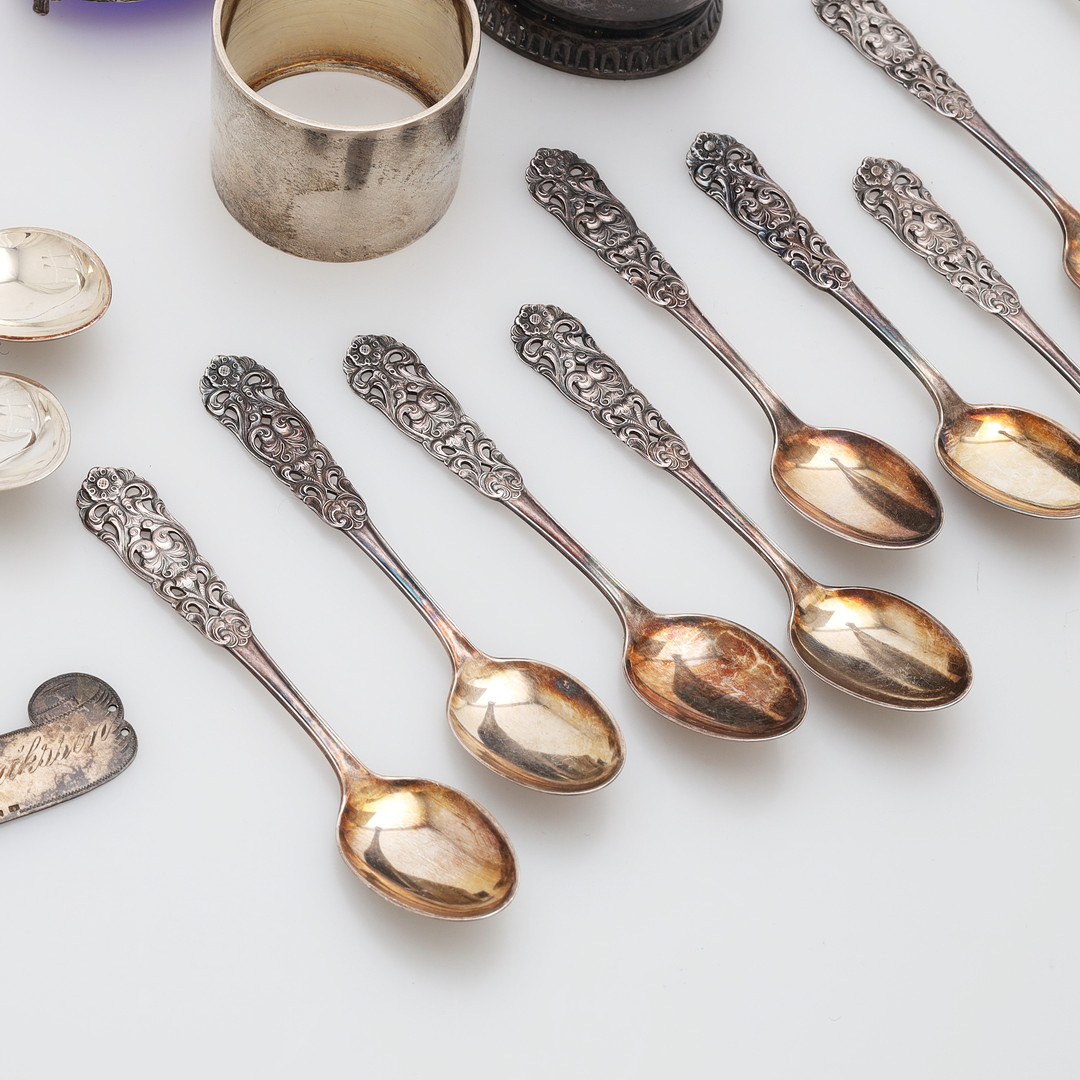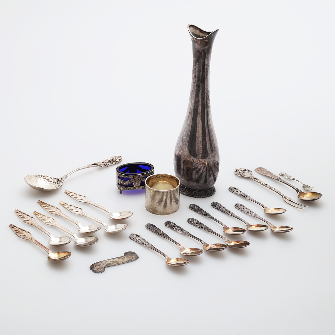 4491167. SØLVGENSTANDE, 22 stykker, vægt 369 gram.