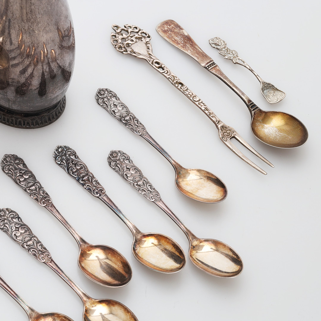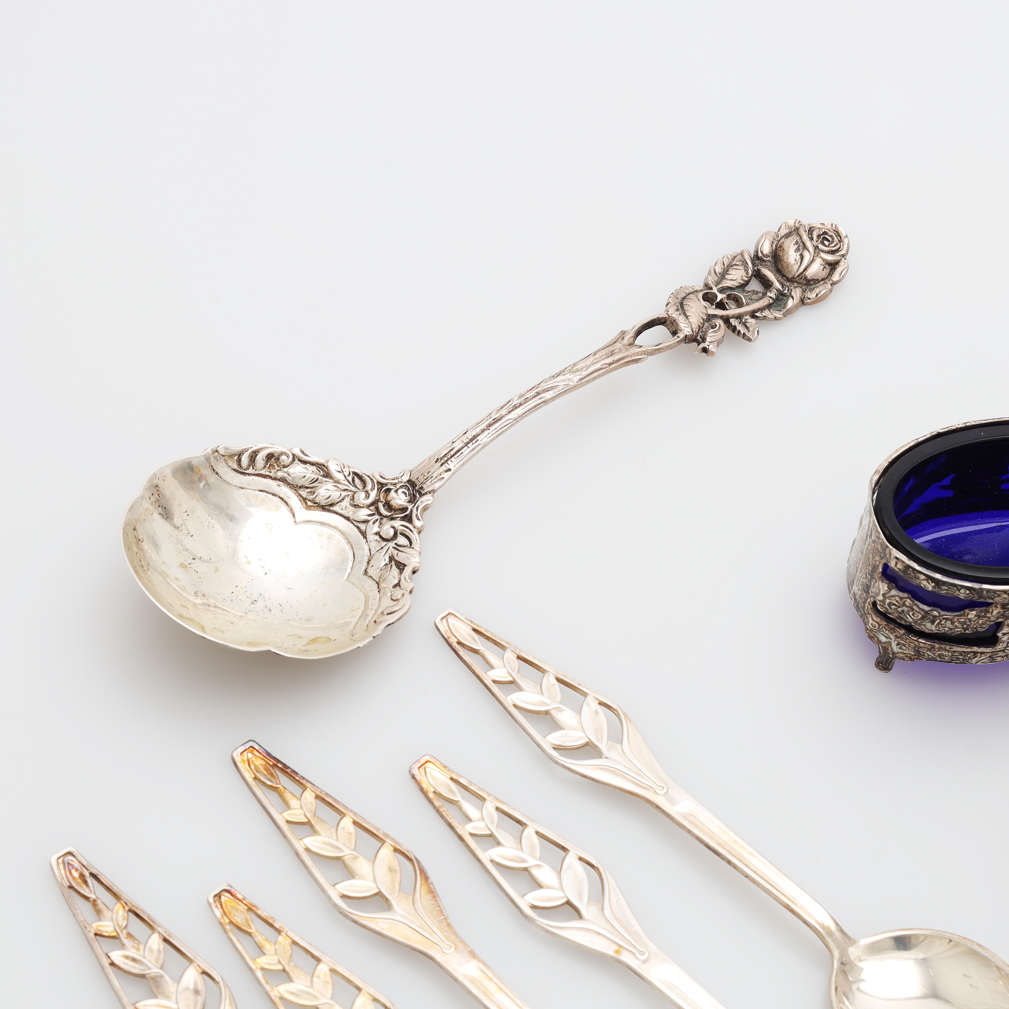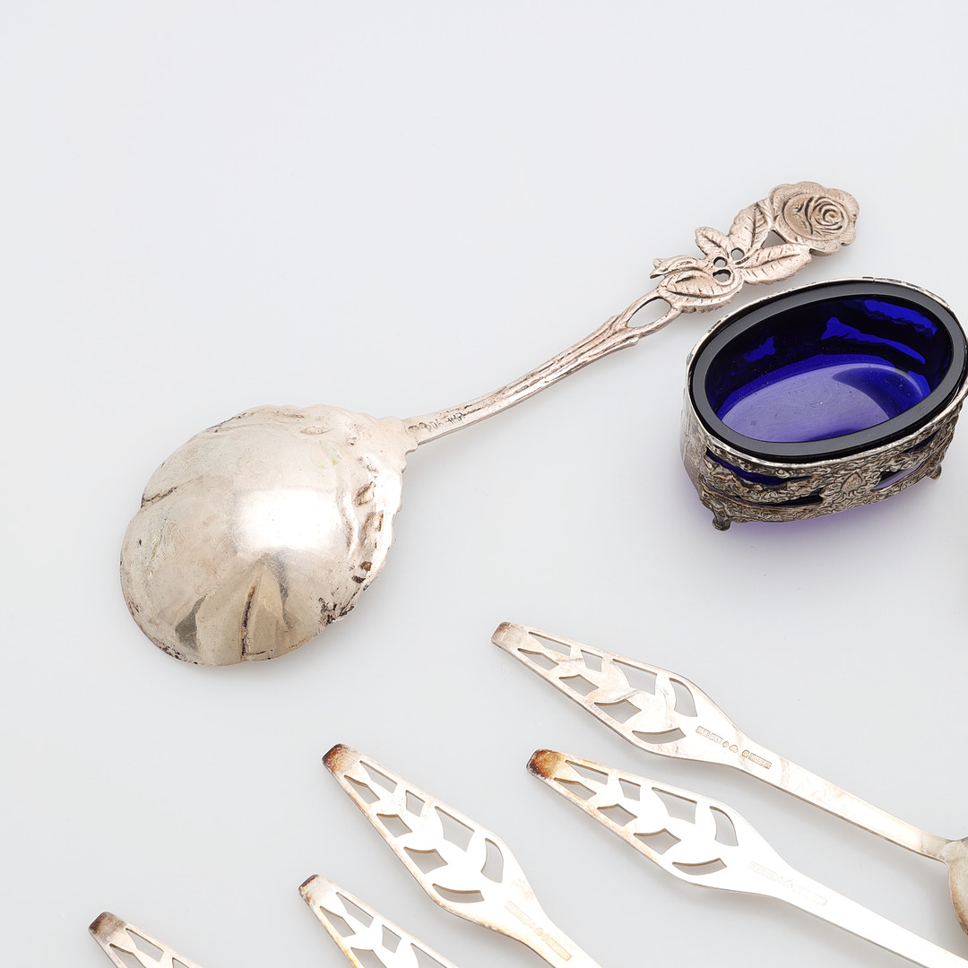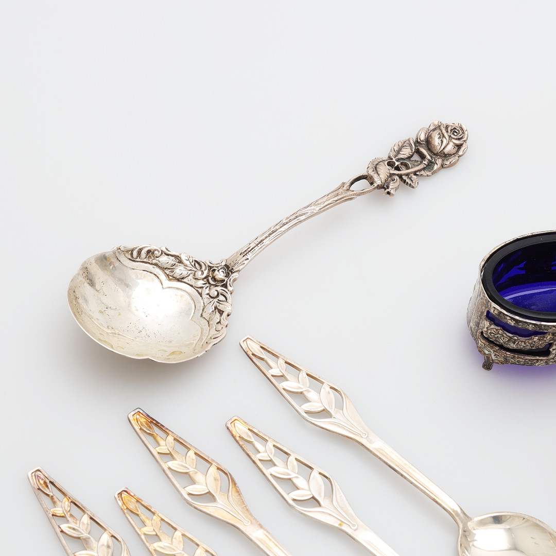 4491167. SØLVGENSTANDE, 22 stykker, vægt 369 gram.