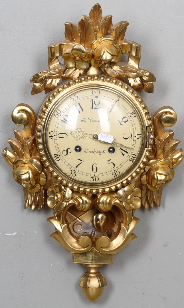 45006. VÆGPENDUL, gustaviansk stil, Wallins Linköping, 1900-tallet.
