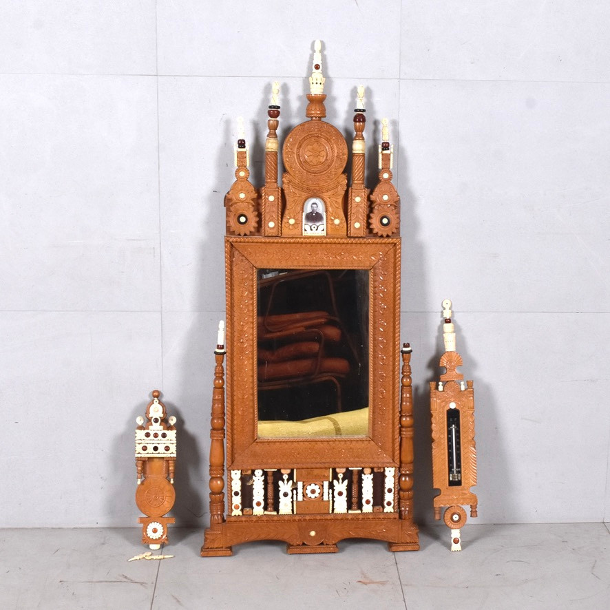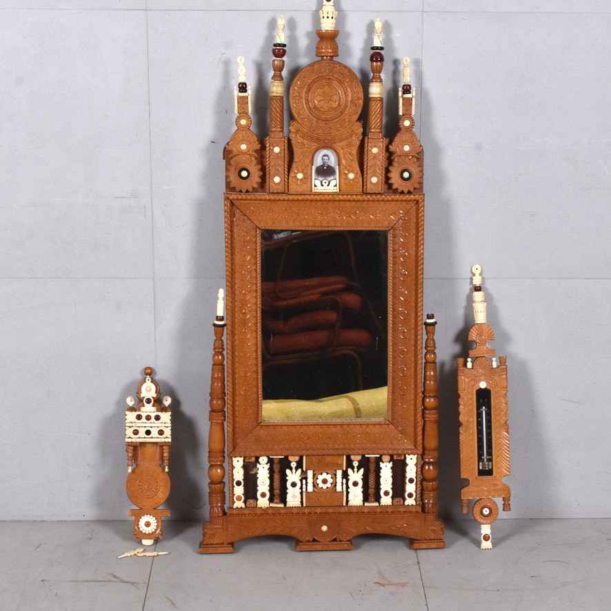 4501871. VÆGSPEJL; BAROMETER OG VÆGHYLDE.