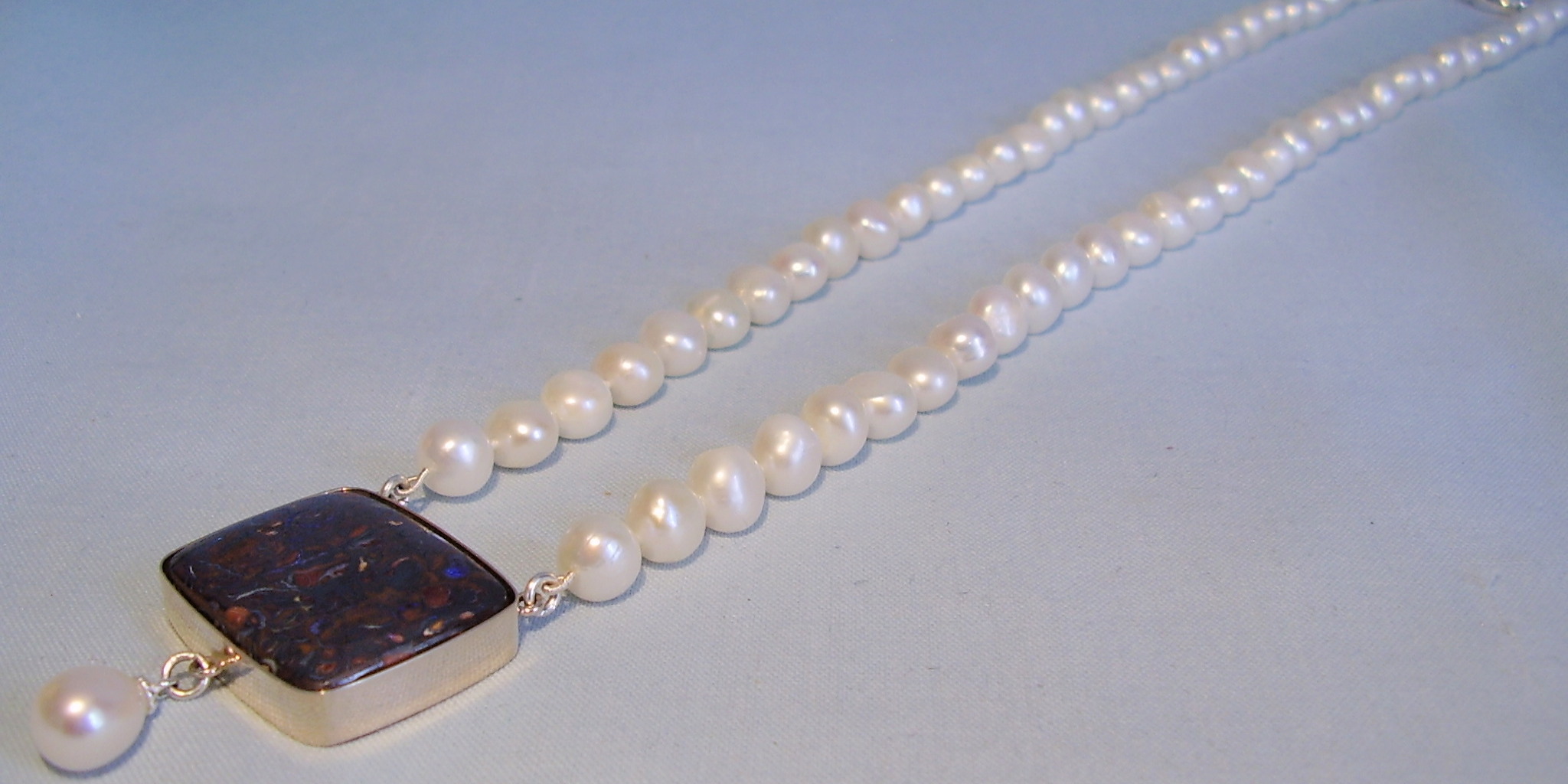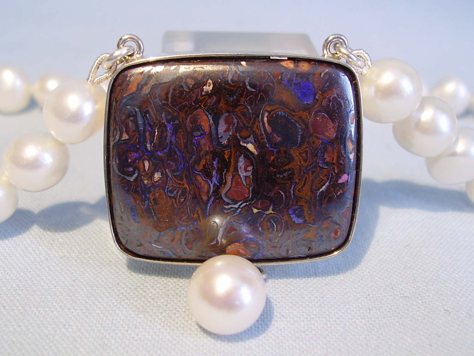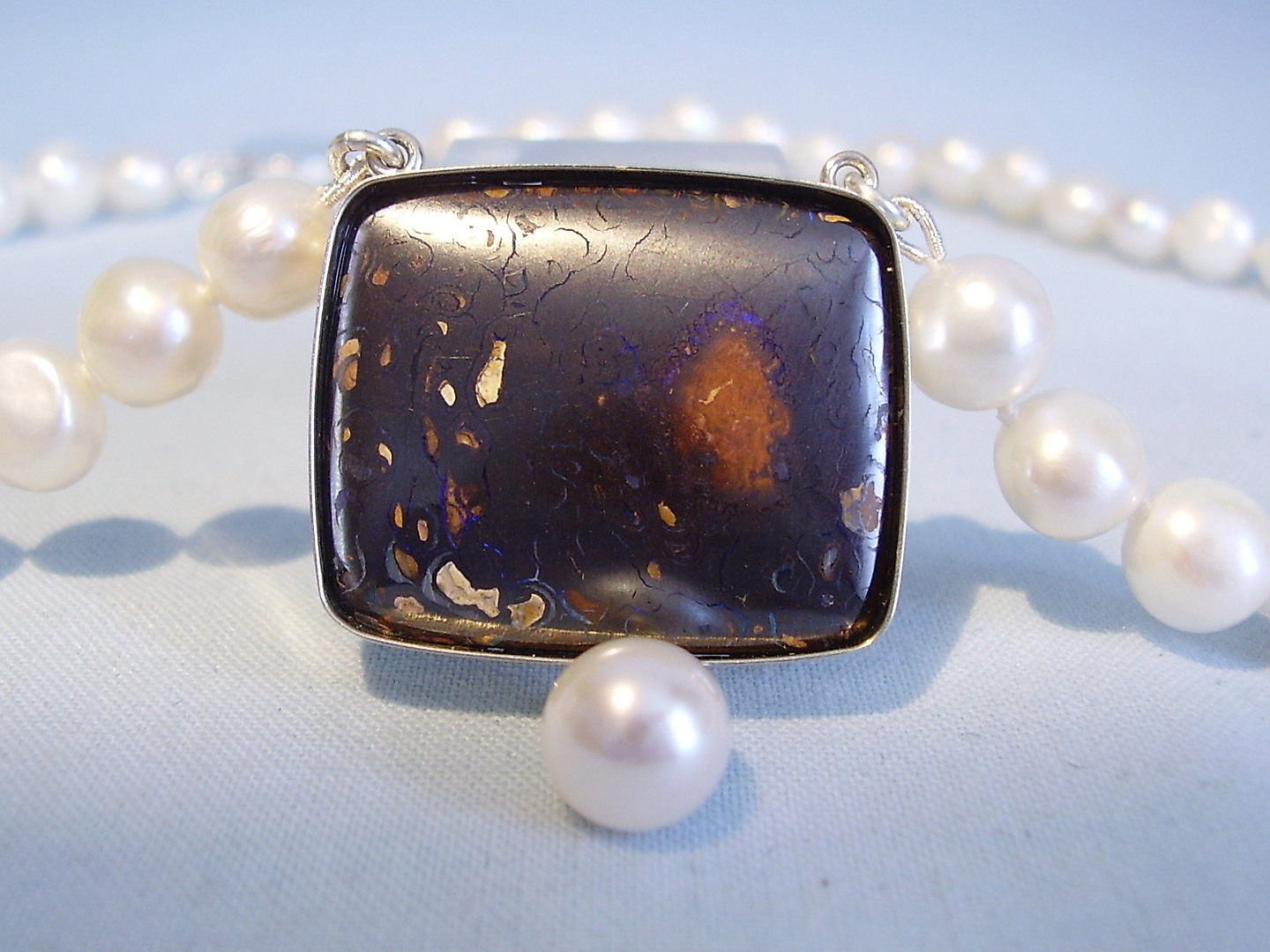 450246. BOULDER OPAL HALSKÆDE 52,7 ct. Sølv 800 håndlavet.